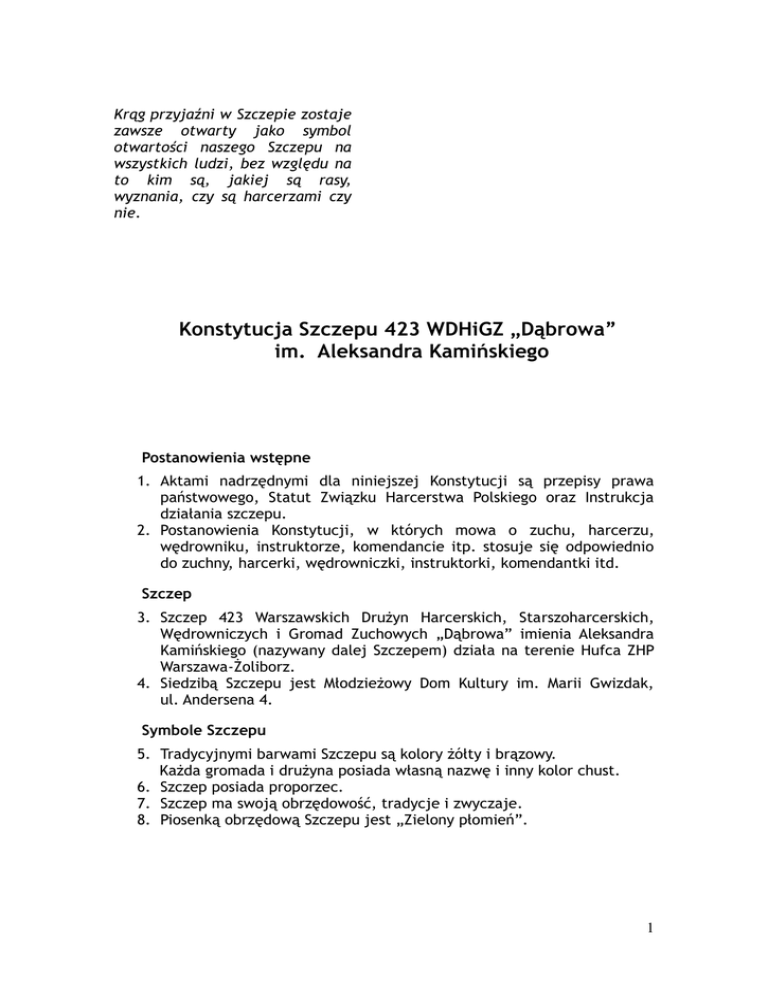 Konstytucja Szczepu - Szczep 423 WDHiGZ "Dąbrowa"