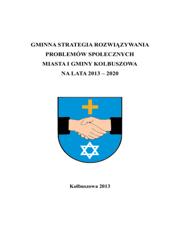 GMINNA STRATEGIA ROZWIĄZYWANIA PROBLEMÓW SPOŁECZNYCH MIASTA I GMINY KOLBUSZOWA NA LATA 2013 – 2020 Kolbuszowa 2013 Spis Treści Cześć I Procedura tworzenia gminnej strategii rozwiązywania problemów społecznych Rozdział I Prawne uwarunkowanie strategi rozwiązywania problemów społecznych Rozdział II Podstawy prawne w zakresie planowania polityki społecznej w Polsce i Unii Europejskiej Część II Wprowadzenie Rozdział I Charakterystyka gminy Kolbuszowa 1. Podział administracyjny miasta i gminy Kolbuszowa 2. Charakterystyka demograficzna miasta i gminy Kolbuszowa Rozdział II Diagnoza problemów społecznych miasta i gminy Kolbuszowa 1. Ubóstwo 2. Bezrobocie 3. Problemy opiekuńczo-wychowawcze w rodzinach. 4. Niepełnosprawność i długotrwała lub ciężka choroba 5. Uzależnienia 6. Przemoc w rodzinie 7. Sytuacja osób starszych 8. Bezdomność 9. Zjawisko dziedziczenia biedy 10. Migracje wewnętrzne i zewnętrzne Rozdział III 1. Mapa problemów społecznych miasta i gminy Kolbuszowa 2. Informacje graficzne dotyczące powodów przyznania pomocy społecznej z podziałem na poszczególne miejscowości gminy Kolbuszowa za 2012 r. Rozdział IV Analiza SWOT Część III Strategia rozwiązywania problemów społecznych Rozdział I 1. Misja 2. Wizja Rozdział II Cele strategiczne, operacyjne i kierunki działań Rozdział III Zasady realizacji gminnej strategi rozwiązywania problemów społecznych Rozdział IV Monitorowanie Strategii Zakończenie Wykaz tabel, map, wykresów Część I Procedura tworzenia gminnej strategii rozwiązywania problemów społecznych Rozdział I Prawne uwarunkowania strategii rozwiązywania problemów społecznych Poniżej przedstawiono akty prawne kluczowe dla funkcjonowania Gminnej Strategii Rozwiązywania Problemów Społecznych Miasta i Gminy Kolbuszowa na lata 2013 – 2020 z krótką charakterystyką zagadnień. Konstytucja Rzeczypospolitej Polskiej Konstytucja Rzeczypospolitej Polskiej jest najważniejszym aktem prawnym państwa polskiego oraz fundamentem państwa i systemu prawnego. To ona określa podstawowe prawa i wolności obywatelskie, a także gwarantuje poszanowanie praw osobistych, politycznych, ekonomicznych oraz socjalnych. Konstytucja obejmuje dobro rodziny, mówi, że wszyscy obywatele są równi wobec praw i obowiązków, nikt nie może być dyskryminowany w życiu politycznym, społecznym i gospodarczym z jakiejkolwiek przyczyny. Oznacza to, że pomoc społeczna powinna wspierać osoby i rodziny w wysiłkach zmierzających do zaspokojenia niezbędnych potrzeb i umożliwiać im życie w odpowiednich warunkach. Ustawa o pomocy społecznej Od maja 2004 r. obowiązuje ustawa o pomocy społecznej z 12.03.2004 r. (tekst jedolity Dz. U. 2013. 182). Ustawodawca definiuje pomoc społeczną jako instytucję polityki społecznej państwa, mającą na celu umożliwienie osobom i rodzinom przezwyciężenie trudnych sytuacji życiowych, których nie są one w stanie pokonać, wykorzystując własne uprawnienia, zasoby i możliwości. Pomoc społeczna ma służyć poprawie bezpieczeństwa socjalnego obywateli i przeciwdziałać wykluczeniu społecznemu, gwarantując jednocześnie stabilne podstawy funkcjonowania systemu zabezpieczenia społecznego. Kładzie również nacisk na aktywizację osób, które znalazły się w trudnej sytuacji, daje gwarancję minimalnego świadczenia. Pomocy społecznej udziela się osobom i rodzinom w szczególności z powodu: · ubóstwa · sieroctwa · bezdomności · bezrobocia · niepełnosprawności · długotrwałej lub ciężkiej choroby · przemocy w rodzinie · potrzeby ochrony ofiar handlu ludźmi · potrzeby ochrony macierzyństwa lub wielodzietności · bezradności w sprawach opiekuńczo-wychowawczych i prowadzenia gospodarstwa domowego, zwłaszcza w rodzinach niepełnych lub wielodzietnych · trudności w integracji cudzoziemców, którzy uzyskali w Rzeczpospolitej Polskiej status uchodźcy lub ochronę uzupełniającą · trudności w przystosowaniu do życia po zwolnieniu z zakładu karnego · alkoholizmu lub narkomanii · zdarzenia losowego i sytuacji kryzysowej · klęski żywiołowej lub ekologicznej. Prawo do świadczeń pomocy społecznej przysługuje: 1. osobie samotnie gospodarującej, której dochód nie przekracza kwoty 542 zł, zwanej „kryterium dochodowym osoby samotnie gospodarującej” 2. osobie w rodzinie, w której dochód na osobę nie przekracza kwoty 456 zł, zwanej „kryterium dochodowym na osobę w rodzinie” 3. rodzinie, której dochód nie przekracza sumy kwot kryterium dochodowego na osobę w rodzinie, zwanej dalej „kryterium dochodowym rodziny” przy jednoczesnym wystąpieniu co najmniej jednego z powodów wymienionych powyżej lub innych okoliczności uzasadniających udzielenie pomocy społecznej. Pomoc społeczna dąży do tego, aby: 1. zapewnić potrzebującym wsparcie w przezwyciężaniu trudnej sytuacji, której nie są w stanie sami pokonać i umożliwić im życie w godnych warunkach 2. doprowadzić osoby i rodziny otrzymujące pomoc społeczną do życiowego usamodzielnienia 3. stworzyć zabezpieczenie finansowe na poziomie interwencji socjalnej osobom nie posiadającym dochodu lub o niskich dochodach, w wieku poprodukcyjnym i osobom niepełnosprawnym 4. zapewnić profesjonalną pomoc rodzinom dotkniętym skutkami patologii społecznych, w tym przemocą w rodzinie 5. integrować ze środowiskiem osoby wykluczone społecznie 6. stworzyć sieć usług socjalnych adekwatnych do potrzeb w tym zakresie. Ustawa o przeciwdziałaniu przemocy w rodzinie Ustawa o przeciwdziałaniu przemocy w rodzinie z 29.07.2005 r. (Dz. U. 2005.180.1493 z późn. zm.) zadania związane z przeciwdziałaniem przemocy domowej rozkłada pomiędzy samorząd gminny i powiatowy, a także administrację rządową i samorząd województwa. Ich głównym celem jest stworzenie skutecznie działającego systemu pomocy osobom poszkodowanym w wyniku przemocy domowej oraz efektywne podejmowanie d