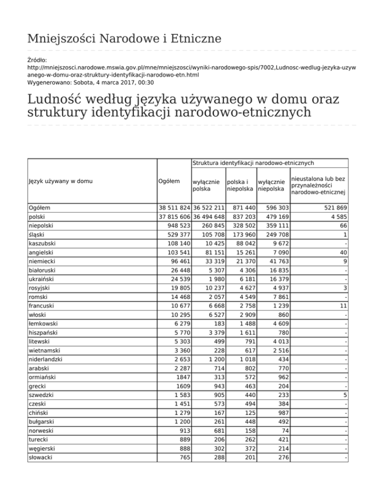 Ludność według języka używanego w domu oraz struktury identyfikacji narodowo-etnicznych 25.51 KB