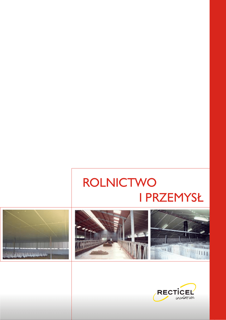 ROLNICTWO I PRZEMYSŁ SPIS TREŚCI - ROLNICTWO 1. WSTĘP 2. PODŁOGA 3. ŚCIANA 3.1. Izolacja w konstrukcji nośnej 3.1.1. Mur szczelinowy 3.1.2. Elementy betonowe 3.2. Izolacja po wewnętrznej stronie konstrukcji nośnej 3.2.1. Zamocowane za pomocą drewnianych listew odbojowych 3.2.2. Zamocowane za pomocą kołków z tworzywa sztucznego 3.3. Izolacja po stronie zewnętrznej konstrukcji nośnej 3.3.1. Izolacja zamontowana równolegle do płatwi 3.3.2. Izolacja zamontowana prostopadle do płatwi i stężeń 4. DACH 4.1. Izolacja zamocowana pod konstrukcją dachu 4.1.1. System EUROTHANE QUATTRO 4.1.2. Zamocowanie cienkich płyt za pomocą wkrętów lub gwoździ z podkładką z tworzywa sztucznego 4.1.3. Grube płyty z profilem krzesełkowym 4.2. Izolacja montowana nad konstrukcją dachu 4.2.1. Montaż nad dźwigarami: płyty faliste z cementu włóknistego 4.2.2. Montaż nad dźwigarami: płyty metalowe 5. MATERIAŁY MOCUJĄCE 5.1. System Quattro 5.1.1. Kształtownik PROFISOL 5.1.2. Zawieszka PROFISOL 5.2. Kształtownik krzesełkowy 1. WSTĘP Firma RECTICEL od wielu lat jest przodującym producentem płyt termoizolacyjnych stosowanych w budynkach rolniczych i ogrodniczych. Płyta izolacyjna EUROTHANE przeznaczona jest specjalnie do tych celów. EUROTHANE jest płytą poliuretanową w okładzinie z paroszczelnego laminatu koloru złotego, o długości do 12 m (co pozwala maksymalnie ograniczyć ilość spoin), odporną na gryzonie i owady. W wersji QUATTRO płyta jest szczelnie zamknięta z czterech stron. Zastosowanie EUROTHANE umożliwia: utrzymanie odpowiedniego klimatu w stajniach, oborach, chlewniach, kurnikach, itp. zapobieganie skraplaniu się pary, doskonałe rozpraszanie światła, łatwe utrzymanie czystości. Ponadto można ją stosować we wszelkiego rodzaju przechowalniach, magazynach żywności, czyli wszędzie tam, gdzie istnieje potrzeba utrzymania stałej temperatury i wilgotności. Płyty EUROTHANE stosuje się zarówno na zewnątrz budynku (tzw. konstrukcja zimna - dach / ściana), jak i wewnątrz budynku (tzw. konstrukcja ciepła - dach/ściana). Zaleca się wybór tego samego rodzaju konstrukcji, zarówno dla dachu, jak i ścian w celu uniknięcia zimnych progów i stworzenia dobrej izolacji. Przy montażu płyt EUROTHANE szczególną uwagę należy zwrócić na mocowanie i zabezpieczenie krawędzi, jak i uwzględnienie temperatur, wilgotności względnej oraz zastosowanych systemów wentylacyjnych w konstrukcji. Firma RECTICEL mając na uwadze ułatwienie pracy opracowała zalecenia montażowe dla najczęściej używanych rozwiązań konstrukcyjnych. Stosowanie się do tych zaleceń pozwoli uzyskać optymalne rezultaty. Firma RECTICEL jest zawsze gotowa do udzielania porad w każdym wypadku. 2. PODŁOGA W miejscach przechowywania ziemniaków, warzyw, owoców izolacja podłogi jest bardzo istotna. Połączenie z izolacją ścian musi zostać wykonane w sposób bardzo dokładny. OPIS: 1. Posadzka betonowa 2. Siatka zbrojąca 3. Folia polietylenowa 4. EUROTHANE 5. Folia polietylenowa 6. Podłoże betonowe WYKONANIE Na ustabilizowane podłoże betonowe położona zostaje folia polietylenowa. Należy uważać by przykryła na zakładkę folię polietylenową spuszczoną ze ściany. Te i inne zakładki muszą mieć co najmniej 20 cm szerokości. Na folii zostają położone na sucho płyty EUROTHANE. Izolacja cieplna ścian musi łączyć się z izolacją cieplną podłogi. Na izolację podłogi rozwinięta zostaje folia polietylenowa, aby zapobiec przedostawaniu się wody pomiędzy izolację. Po położeniu siatki zbrojącej wylana zostaje posadzka betonowa. 3. ŚCIANA 3.1. Izolacja w konstrukcji nośnej 3.1.1. Mur szczelinowy Przy pewnych konstrukcjach ścian izolacja cieplna nakładana jest wewnątrz ściany. Szczegóły i zalecenia montażowe w części „Mur szczelinowy”. 3.1.2. Elementy betonowe Obecnie coraz częściej stosuje się w budynkach rolniczych i przemysłowych elementy betonowe z rdzeniem termoizolacyjnym z PUR (poliuretanu). Przede wszystkim w przypadku przechowalni zwraca się szczególną uwagę na izolacyjność cieplną tych elementów. Tu również wybór pada na EUROTHANE ze względu na niską wartość współczynnika przewodzenia ciepła λ, bardzo dobrą stabilność wymiarową i wysoką odporność na obciążenia mechaniczne płyt. Przykładowy przekrój muru szczelinowego. Różni producenci betonu stosują w swoich płytach izolację EUROTHANE. RECTICEL jest zawsze gotowy udzielić informacji w tym zakresie. 3.2. Izolacja po wewnętrznej stronie konstrukcji nośnej. 3.2.1. Zamocowanie za pomocą drewnianych listew odbojowych OPIS: 1. Beton zbrojony 2. Zbrojenie 3. Folia polietylenowa 4. EUROTHANE 5. Warstwa przeciwpyłowa 6. Podłoże betonowe 7. Fundament 8. Odbojnica 9. Taśma paroszczelna 10. Drewniane listwy odbojowe 11. Kołki z tworzywa sztucznego 12. Frez: wcięcie na boku wzdłużnym 13. EUROTHANE WYKONANIE Płyty EUROTHANE frezowane na boku wzdłużnym przymocowane zostają do ściany przy użyciu kołków z tworzywa sztucznego. Drewniana listwa odbojowa pełni dwie funkcje: równomierne zamocowanie płyt, ochrona płyt. Spoiny pokryte zostają taśmą paroszczelną (9). Przy mocowaniu izolacji ścian EUROTHANE należy zwrócić uwagę, aby była ona połączona z izolacją podłogi i dachu w sposób zapobiegający powstawaniu szpar / mostków termicznych. W przechowalniach i chłodniach, w których panują niskie temperatury (niższe niż 4°C) zaleca się uprzednie umocowanie na ścianie ciągłej folii polietylenowej (3). Folię należy układać na zakład min. 20 cm. Odbojnica umieszczona na dole stanowi dodatkowe zabezpieczenie (8). 3.2.2. Zamocowanie za pomocą kołków z tworzywa sztucznego OPIS 1. EUROTHANE 2. Kołek z tworzywa sztucznego 3. Taśma paroszczelna 4. Odbojnica 5. Warstwa przeciwpyłowa 6. Zbrojenie 7. 8. 9. 10. 11. 12. Folia polietylenowa Podłoże betonowe Fundament Frez Posadzka betonowa min.70 mm grubośc