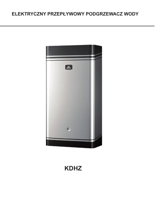 ELEKTRYCZNY PRZEPŁYWOWY PODGRZEWACZ WODY KDHZ Zużyty produkt nie może być traktowany jako odpad komunalny. Zdemontowane, urządzenie należy dostarczyć do punktu zbiórki sprzętu elektrycznego i elektronicznego w celu recyklingu. Odpowiednie zadysponowanie zużytego produktu zapobiega potencjalnym negatywnym wpływom na środowisko jakie mogłyby wystąpić w przypadku niewłaściwego zagospodarowania odpadów. W celu uzyskania bardziej szczegółowych informacji na temat recyklingu tego produktu, należy skontaktować się z lokalną jednostką samorządu terytorialnego, ze służbami zagospodarowania odpadów lub ze sklepem w którym zakupiony został ten produkt. Warunki bezpiecznej i niezawodnej pracy 1. 2. 3. 4. 5. 6. 7. 8. 9. 10. 11. 12. 13. 14. 15. 16. 17. 18. 19. Zapoznanie się z treścią niniejszej instrukcji obsługi umożliwi prawidłową instalację i eksploatację urządzenia, zapewniając jego długotrwałą i niezawodną pracę. Urządzenie przeznaczone jest wyłącznie do montażu na płaskiej powierzchni, dedykowane do zabudowy. Podgrzewacz można użytkować tylko wówczas, gdy został on prawidłowo zainstalowany i znajduje się w nienagannym stanie technicznym. Jeżeli na rurze doprowadzającej wodę do podgrzewacza znajduje się zawór zwrotny, należy bezwzględnie zamontować zawór bezpieczeństwa na odcinku między podgrzewaczem a zaworem zwrotnym. Nie stosować rur z tworzyw sztucznych - ani na doprowadzeniu zimnej wody, ani na odprowadzeniu gorącej. Przed pierwszym uruchomieniem oraz po każdym opróżnieniu podgrzewacza z wody (np. w związku z pracami przy instalacji wodociągowej z powodu konserwacji) powinien on zostać odpowietrzony wg punktu „odpowietrzenie”. Podłączenie podgrzewacza do sieci elektrycznej oraz pomiar skuteczności ochrony przeciwporażeniowej powinien wykonać elektryk z uprawnieniami. Podgrzewacz należy bezwzględnie uziemić. Urządzenie powinno być na stałe podłączone do instalacji elektrycznej z zaciskiem uziemiającym. Instalacja elektryczna powinna być wyposażona w urządzenia ochronne różnicowoprądowe oraz środki zapewniające odłączenie urządzenia od źródła zasilania, w których odległość między stykami wszystkich biegunów wynosi nie mniej niż 3mm. Urządzenia nie wolno instalować w pomieszczeniach zagrożonych niebezpieczeństwem wybuchu, oraz w których temperatura otoczenia może obniżyć się poniżej 0°C. Nie zaleca się stosowania baterii termostatycznych. Przechowywanie podgrzewacza w pomieszczeniu z temperaturą poniżej 0°C grozi jego uszkodzeniem (wewnątrz znajduje się woda). Urządzenie może być podłączone jedynie do rury wodociągowej zimnej wody. Należy pilnować, aby włączony podgrzewacz nie został opróżniony z wody, co może wystąpić przy braku wody w sieci wodociągowej. Nie otwierać obudowy podgrzewacza przy włączonym zasilaniu elektrycznym. Brak filtra sitkowego na zasilaniu wodnym grozi uszkodzeniem podgrzewacza. Osadzanie się kamienia w elementach podgrzewacza może znacznie ograniczyć przepływ wody lub doprowadzić do uszkodzenia podgrzewacza. Uszkodzenie podgrzewacza i szkody powstałe w wyniku zakamienienia nie podlegają gwarancji. Podgrzewacz i armaturę sanitarną należy poddawać okresowemu odkamienianiu a częstotliwość wykonywania tych czynności zależy od twardości wody. Należy zwrócić uwagę na fakt, iż woda o temp. powyżej 40°C wywołuje uczucie gorąca, szczególnie u dzieci i może wywoływać wrażenie oparzenia. Niniejsze urządzenie nie jest przeznaczone do użytkowania przez osoby (w tym dzieci) o ograniczonej zdolności fizycznej, czuciowej lub psychicznej, lub osoby nie mające doświadczenia lub znajomości urządzenia, chyba że odbywa się to pod nadzorem lub zgodnie z instrukcją użytkowania urządzenia, przekazanej przez osoby odpowiadające za ich bezpieczeństwo. Należy zwracać uwagę na dzieci, aby nie bawiły się urządzeniem. PL-054B_f.466 3 Montaż Podgrzewacz dedykowany jest do zabudowy. Minimalne wymiary wnęki: - szerokość 450mm - wysokość 550mm przy maksymalnej głębokości 220mm. 1. Zdjąć pokrywę podgrzewacza. 2. Oznaczyć położenie wieszaków [1], przyłączy wodnych i elektrycznych. 3. Doprowadzić do oznac zon ych miejsc instalację elektryczną i wodną. 4. Zawiesić podgrzewacz na górnych wieszakach i przykręcić do ściany przez otwory [2], wprowadzając wcześniej elektryczny przewód zasilający. 5. Podłączyć podgrzewacz do instalacji elektrycznej. 6. Usunąć zaślepki z przyłączy zimnej i ciepłej wody. 7. Podłączyć podg rzew acz do ins talac ji wodnej. 8. Odkręcić zawór doprowadzający zimn ą wodę i sprawdzić szczeln ość połączeń wodnych. 9. Odpowietrzyć instalację według punktu „Odpowietrzenie”. 10. Sprawdzić załączenie wyłącznika WT3. 1 11. Zamontować pokrywę pod grzewacza. 12. Upewnić się, czy przez otwory w tylnej ściance urządzenia nie ma dostępu do elementów będących pod napięciem. 2 1 2 4 Wyłącznik WT3 a) b) a) - załączanie wyłącznika b) - wyłącznik w stanie załączonym (wciśnięty trzpień) Odpowietrzenie 1. Wyłączyć zasilanie elektryczne podgrzewacza. 2. Włączyć przepływ wody (odkręcić zawór ciepłej wody) w celu odpowietrzenia instalacji (ok.15÷30 sekund) aż woda zacznie płynąć jednolitym, równym strumieniem. 3. Włączyć zasilanie elektryczne. Eksploatacja Podgrzewacz włącza się automatycznie po osiągnięciu odpowiedniego przepływu wody. Przy wzroście poboru ciepłej wody załącza się drugi stopień grzania. Konserwacja Czyszczenie filtra wody: 1. Wyłączyć zasilanie elektryczne oraz zamknąć dopływ zimnej wody. 2. Zdjąć pokrywę podgrzewacza. 3. Odkręcić przyłącze wlotowe od ze społu kryzy - po stronie zimnej wody (przytrzymać kluc zem 22 zes pół kryzy). 4. Wyjąć filtr sitkowy z gniazda zespołu kryzy. 5. Usunąć zanieczyszczenia z filtra sitkowego. 6. Zamontować filtr sit