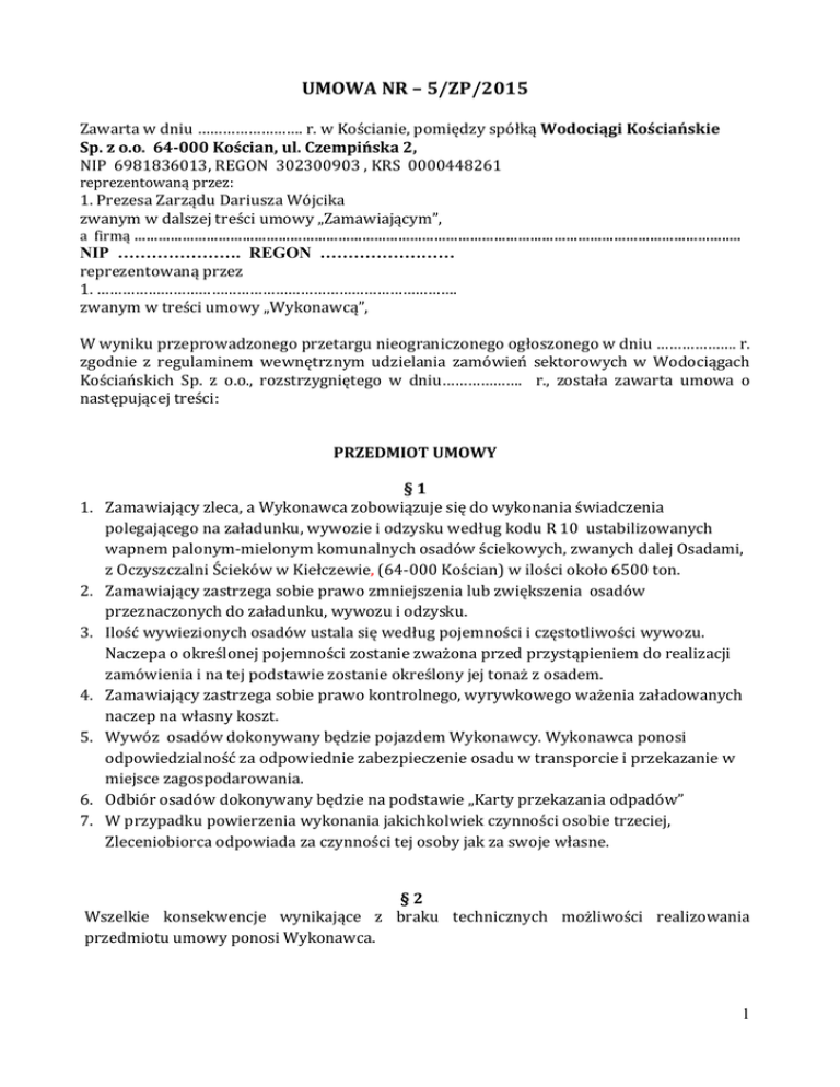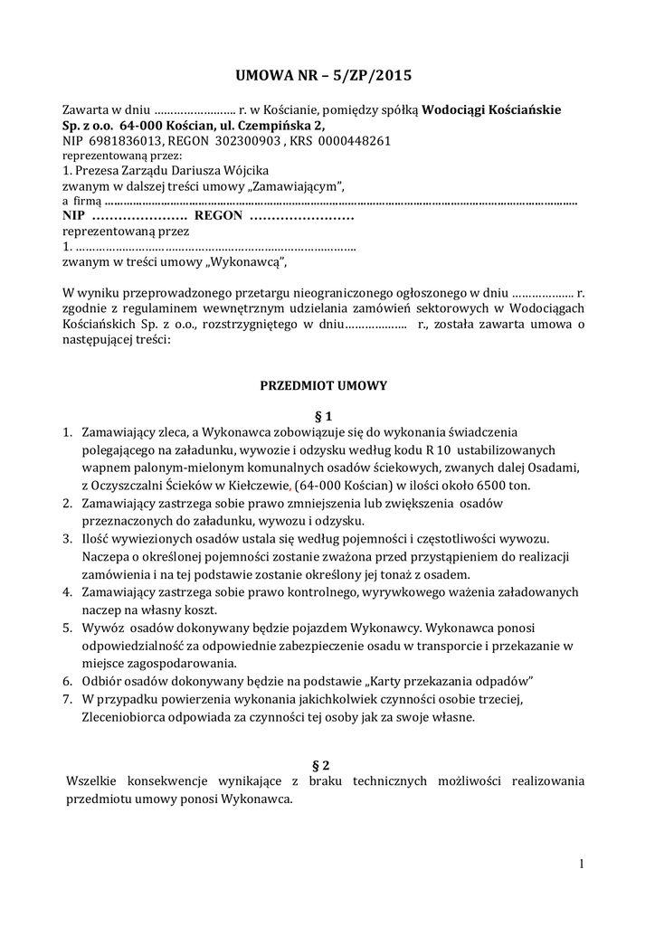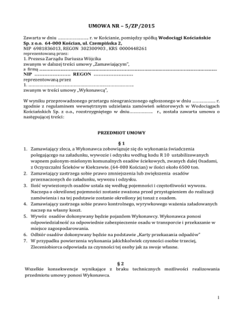 umowa nr – 5/zp/2015 - Wodociągi Kościańskie