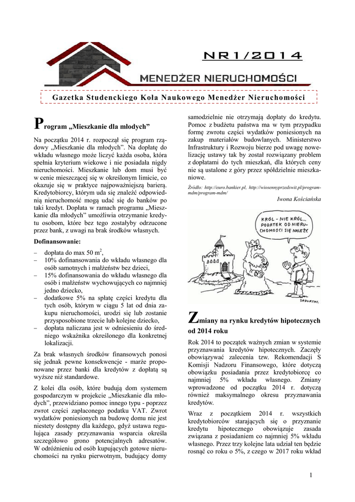 Gazetka Studenckiego Koła Naukowego Menedżer Nieruchomości