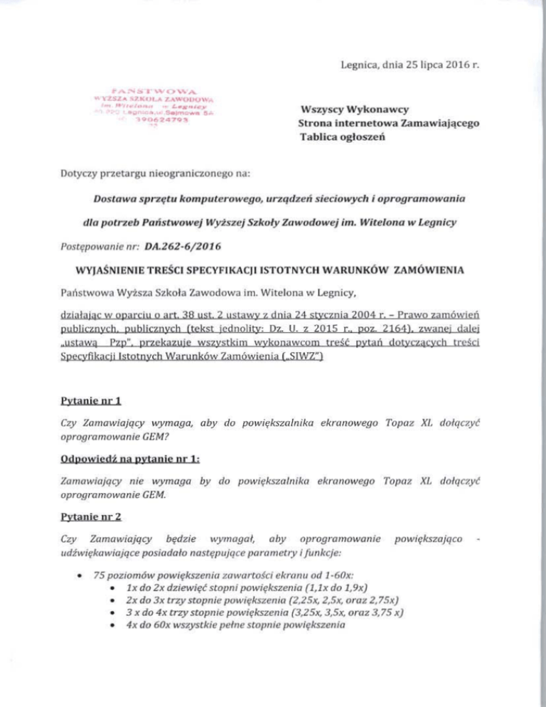 Paflstwow3 Wyisza Szkola Zawodowa im. Wi tel003 w Legnky,