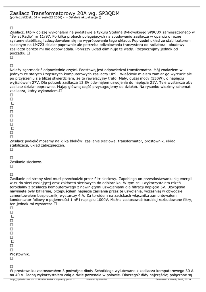 Zasilacz Transformatorowy 20A wg. SP3QDM