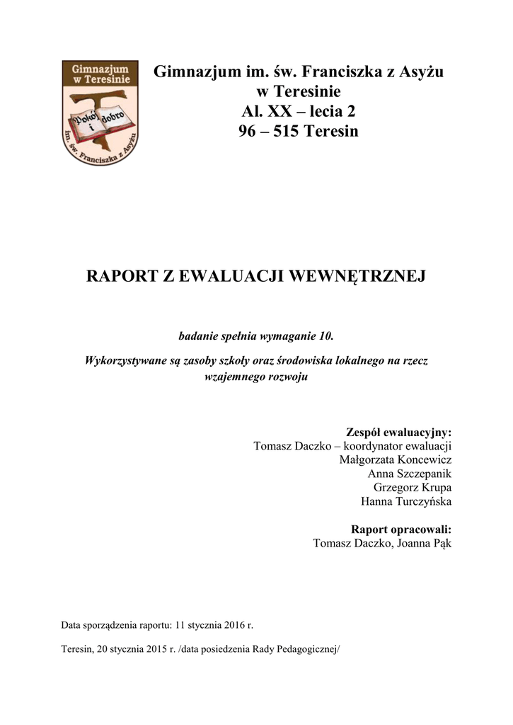 515 Teresin RAPORT Z EWALUACJI WEWNĘTRZNEJ