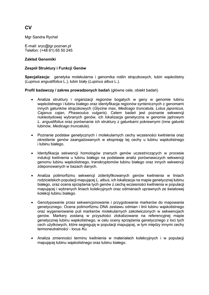 mgr Sandra Rychel - Instytut Genetyki Roślin