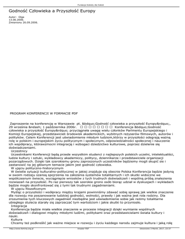 Zaproszenie na konferencję w Warszawie pt. „Godność człowieka a przyszłość Europy”,