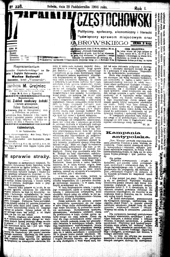 ^ Częstochowy jest sprawa pierwsze[ °S™ego znaczenia. Nasuwają się dwa sposojej załatwienia. Pierwszy jest założenie
