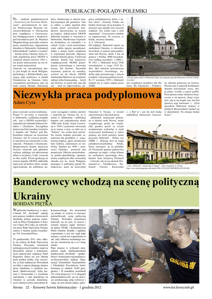N - - - - - - - - - - - - - - - - Ukrainy - - - - - - - Strona 22 - Kresowy Serwis Informacyjny - 1 grudnia 2012 www.ksi.kresy.info.pl