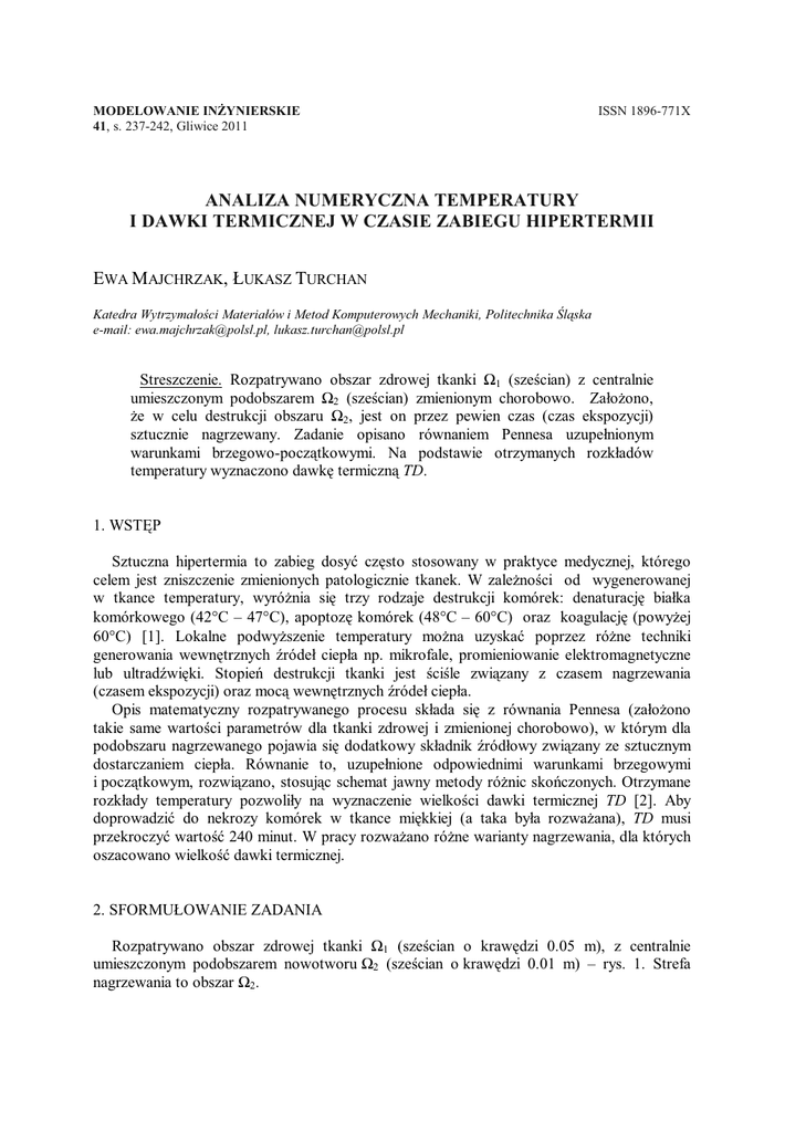 analiza numeryczna temperatury i dawki termicznej w czasie