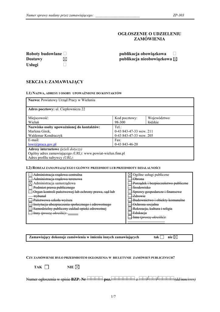 Numer sprawy nadany przez zamawiającego: ________________________ ZP-303 OGŁOSZENIE O UDZIELENIU ZAMÓWIENIA Roboty budowlane Dostawy Usługi publikacja obowiązkowa publikacja nieobowiązkowa SEKCJA I: ZAMAWIAJĄCY I.1) NAZWA, ADRESY I OSOBY UPOWAśNIONE DO KONTAKTÓW Nazwa: Powiatowy Urząd Pracy w Wieluniu Adres pocztowy: ul. Ciepłownicza 22 Miejscowość: Kod pocztowy: Województwo: Wieluń 98-300 łódzkie Tel.: Nazwisko osoby upowaŜnionej do kontaktów: Marlena Girek, 0-43 843-47-33 wew. 211 Waldemar Kondraczyk 0-43 843-47-33 wew. 205 E-mail: Fax: [email protected] 0-43 843-46-20 Adresy internetowe (jeŜeli dotyczy) Ogólny adres zamawiającego (URL): www.powiat-wielun.finn.pl Adres profilu nabywcy (URL): I.2) RODZAJ ZAMAWIAJĄCEGO I GŁÓWNY PRZEDMIOT LUB PRZEDMIOTY DZIAŁALNOŚCI Administracja rządowa centralna Administracja rządowa terenowa Administracja samorządowa Podmiot prawa publicznego Organ kontroli państwowej lub ochrony prawa, sąd lub trybunał Państwowa szkoła wyŜsza Instytucja ubezpieczenia społecznego i zdrowotnego Samodzielny publiczny zakład opieki zdrowotnej Inny (proszę określić): Ogólne usługi publiczne Obrona Porządek i bezpieczeństwo publiczne Środowisko Sprawy gospodarcze i finansowe Zdrowie Budownictwo i obiekty komunalne Ochrona socjalna Rekreacja, kultura i religia Edukacja Inne (proszę określić): Zamawiający dokonuje zamówienia w imieniu innych zamawiających tak nie CZY ZAMÓWIENIE BYŁO PRZEDMIOTEM OGŁOSZENIA W BIULETYNIE ZAMÓWIEŃ PUBLICZNYCH? TAK NIE Numer ogłoszenia w spisie BZP: Nr poz. 1/7 z / / (dd/mm/rrrr) Numer sprawy nadany przez zamawiającego: ________________________ WARTOŚĆ ZAMÓWIENIA ZP-303 (bez VAT) 6.539,40 EUR SEKCJA II: PRZEDMIOT ZAMÓWIENIA II.1) OPIS II.1.1) Nazwa nadana zamówieniu przez zamawiającego audyt bezpieczeństwa systemu informatycznego oraz opracowanie polityki bezpieczeństwa informacji w Powiatowym Urzędzie Pracy w Wieluniu II.1.2) Rodzaj zamówienia oraz miejsce wykonania robót budowlanych, realizacji dostaw lub świadczenia usług (Wybrać wyłącznie jedną kategorię – roboty budowlane, dostawy lub usługi) (a) Roboty budowlane (b) Dostawy (c) Usługi Wykonanie Kupno Kategoria usługi: Zaprojektowanie i wykonanie DzierŜawa Realizacja obiektu budowlanego za pomocą dowolnych środków, zgodnie z wymaganiami określonymi przez zamawiającego Najem Główne miejsce lub lokalizacja robót budowlanych Główne miejsce realizacji dostawy nr Leasing Inne Główne miejsce świadczenia usług siedziba zamawiającego ul. Ciepłownicza 22, 98-300 Wieluń II.1.3) Ogłoszenie dotyczy Zamówienia publicznego Zamówień objętych dynamicznym systemem zakupów Zawarcia umowy ramowej II.1.4) Określenie przedmiotu zamówienia Przedmiotem Zamówienia jest: przeprowadzenie audytu bezpieczeństwa systemu informatycznego oraz opracowanie polityki bezpieczeństwa informacji w Powiatowym Urzędzie Pracy w Wieluniu zgodnie z następującymi wymaganiami: Celem audytu bezpieczeństwa powinno być zidentyfikowanie słabych punktów w systemie informatycznym Urzędu, których obecność moŜe przyczynić się do przypadkowego lub celowego zafałszowania przetwarzanych informacji, zniszczenia danych, zablokowania do nich dostępu lub ujawnienia informacji osobom nieupowaŜnionym. Audyt bezpieczeństwa systemu informatycznego powinien obejmować zarówno rozwiązania sieciowe, serwerowe, jak równieŜ stanowiska robocze, oraz punkty styku z siecią publiczną. 2/7 Numer sprawy nadany przez zamawiającego: ________________________ ZP-303 Zakres audytu powinien być następujący: − rozpoznanie problemu przetwarzania danych w urzędzie, − rozpoznanie zbiorów danych przetwarzanych w urzędzie, − rozpoznanie systemów przetwarzających dane i ich konfiguracji, − analizę topologii sieci informatycznej z uwzględnieniem segmentacji oraz ewentualnych problemów związanych z wydajnością, − analizę bezpieczeństwa i wydajności styku sieci informatycznej przedsiębiorstwa z sieciami publicznymi − analizę konfiguracji komponentów systemu informatycznego, z uwzględnieniem sprzętu komputerowego, sieciowych urządzeń aktywnych, systemów operacyjnych, systemów zarządzania bazami danych, standardowych aplikacji, − analizę organizacji i zarządzania funkcją informatyczną pod kątem bezpieczeństwa z uwzględnieniem analizy dostępu uŜytkowników do aplikacji, procedur backupu oraz procesu administracji, − zewnętrzne i wewnętrzne testy penetracyjne i audyty bezpieczeństwa systemów przetwarzających dane, − ocena zastosowanych systemów zabezpieczeń sprzętowych i programowych, − identyfikacja zagroŜeń, słabości i zdarzeń i oszacowanie ryzyka przetwarzania danych. Wymagane w ramach audytu testy penetracyjne powinny być prowadzone przy uŜyciu specjalizowanych narzędzi, za pomocą których sprawdzana jest obecność luk w konfiguracji bezpieczeństwa systemu, pozwalających na przeprowadzenie skutecznego ataku. Testy powinny obejmować komputery podłączone do sieci informatycznej i zainstalowane na nich oprogramowanie jak i sieciowe urządzenia aktywne (routery, switche, itp.). Wymagane jest przeprowadzenie dwóch wariantów testów penetracyjnych: − testów penetracyjnych przeprowadzanych ze stacji roboczej podłączonej do systemu informatycznego z zewnątrz (tzn. poprzez urządzenie łączące system informatyczny Urzędu z Internetem) – mających na celu zidentyfikowanie moŜliwości przeprowadzenia włamania z zewnątrz przedsiębiorstwa, − testów penetracyjnych przeprowadzanych ze stacji roboczej podłączonej do systemu informatycznego wewnątrz Urzędu - w wyniku których zidentyfikowane są moŜliwości przeprowadzenia włamania z wewnątrz firmy (na przykład przez pracowników). Podczas testów penetracyjnych powinny zostać wykonane m.in. następujące czynności: − rozpoznanie dostępnych z obszaru Internetu komputerów i urządzeń sieciowych, rodzaju 