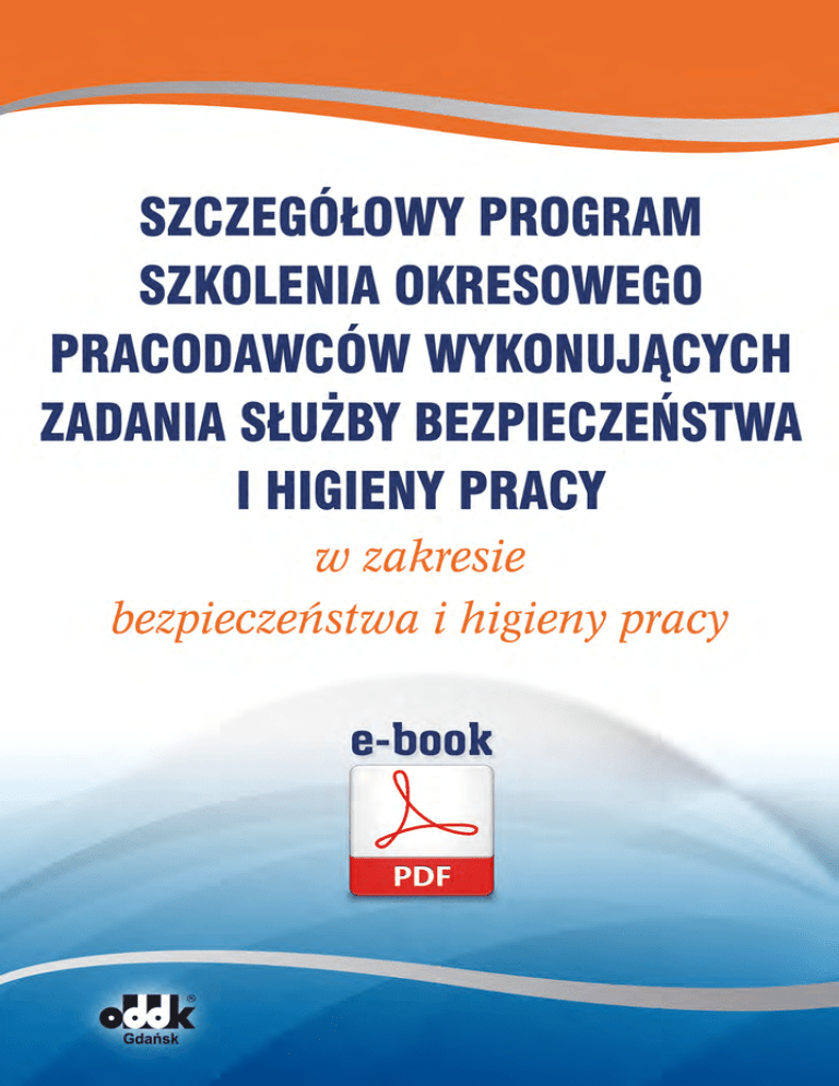 © ODDK. Plik jest własnością Wydawnictwa ODDK Gdańsk 2012-07-16, ISBN 978-83-7804-405-2 SZCZEGÓŁOWY PROGRAM SZKOLENIA OKRESOWEGO pracodawców wykonujących zadania służby bezpieczeństwa i higieny pracy w zakresie bezpieczeństwa i higieny pracy Zgodnie z rozporządzeniem Ministra Gospodarki i Pracy z dnia 27 lipca 2004 r. w sprawie szkolenia w dziedzinie bezpieczeństwa i higieny pracy (Dz.U. Nr 180, poz. 1860 z późn. zm.) Ośrodek Doradztwa i Doskonalenia Kadr Sp. z o.o. Gdańsk 2012 © ODDK. Plik jest własnością Wydawnictwa ODDK Gdańsk 2012-07-16, ISBN 978-83-7804-405-5 Szczegółowy program szkolenia okresowego pracodawców wykonujących zadania służby bhp Spis treści Ramowy program szkolenia okresowego pracodawców wykonujących zadania służby bezpieczeństwa i higieny pracy . . . . . . . . . . . . . . . . . . . . . . . . . . . . . . 1. Cel szkolenia. . . . . . . . . . . . . . . . . . . . . . . . . . . . . . . . . . . . 2. Uczestnicy szkolenia . . . . . . . . . . . . . . . . . . . . . . . . . . . . . . . 3. Czas trwania szkolenia . . . . . . . . . . . . . . . . . . . . . . . . . . . . . . 4. Sposób organizacji szkolenia . . . . . . . . . . . . . . . . . . . . . . . . . . . 5. Sprawdzenie wiadomości (egzamin) . . . . . . . . . . . . . . . . . . . . . . . .5 .7 .7 .7 .7 .8 Szczegółowy program szkolenia pracodawców wykonujących zadania służby bezpieczeństwa i higieny pracy . . . . . . . . . . . . . . . . . . . . . . . . . . . . . . . 9 Ogólne wskazówki metodyczne dla prowadzących zajęcia . . . . . . . . . . . . . . . . 17 Konspekt do szczegółowego programu szkolenia pracodawców wykonujących zadania służby bezpieczeństwa i higieny pracy . . . . . . . . . . . . . . . . . . . . . . 18 1. Regulacje prawne z zakresu prawa pracy dotyczące bezpieczeństwa i higieny pracy, z omówieniem źródeł prawa międzynarodowego (dyrektyw WE, konwencji MOP) . . . . . . . . . . . . . . . . . . . . . . . . . . . . . . . . . . 18 2. Ergonomia w kształtowaniu warunków pracy (ergonomia koncepcyjna i korekcyjna) . . . . . . . . . . . . . . . . . . . . . . . . . . . . . . . . . . . . 24 3. Metody identyfikacji, analizy i oceny zagrożeń oraz oceny ryzyka związanego z tymi zagrożeniami . . . . . . . . . . . . . . . . . . . . . . . . . . . . . . . . 25 4. Metody likwidacji lub ograniczenia oddziaływania na pracowników czynników szkodliwych dla zdrowia, uciążliwych i niebezpiecznych występujących w procesach pracy . . . . . . . . . . . . . . . . . . . . . . . . . 29 5. Wymagania bezpieczeństwa i higieny pracy dla budynków i pomieszczeń pracy oraz wymagania dla pomieszczeń i urządzeń higieniczno-sanitarnych . . 34 6. Ustalanie okoliczności i przyczyn wypadków przy pracy i chorób zawodowych . . . . . . . . . . . . . . . . . . . . . . . . . . . . . . . . . . . . 36 7. Analiza przyczyn wybranych wypadków przy pracy i chorób zawodowych i związana z nimi profilaktyka . . . . . . . . . . . . . . . . . . . . . . . . . . . 38 8. Zadania i uprawnienia służby bezpieczeństwa i higieny pracy oraz metody pracy tej służby . . . . . . . . . . . . . . . . . . . . . . . . . . . . . . . . . . . 40 9. Organizacja i metody szkolenia w zakresie bezpieczeństwa i higieny pracy oraz popularyzacja problematyki bhp . . . . . . . . . . . . . . . . . . . . . . . 42 10. Zasady postępowania w razie wypadku w czasie pracy i w sytuacjach zagrożeń (np. pożaru, awarii), w tym zasady udzielania pierwszej pomocy w razie wypadku . . . . . . . . . . . . . . . . . . . . . . . . . . . . . . . . . . 43 11. Problemy ochrony przeciwpożarowej i ochrony środowiska naturalnego . . . . 46 12. Zagadnienia wymagające powtórzenia lub uzupełnienia . . . . . . . . . . . . . 47 Copyright by Ośrodek Doradztwa i Doskonalenia Kadr Sp. z o.o. 3 © ODDK. Plik jest własnością Wydawnictwa ODDK Gdańsk 2012-07-16, ISBN 978-83-7804-405-5 Szczegółowy program szkolenia okresowego pracodawców wykonujących zadania służby bhp 1.6. Profilaktyczna ochrona zdrowia pracowników & Wskazówka metodyczna Należy omówić postanowienia przepisów: art. 226, art. 227, art. 229, art. 230 kp, rozporządzenia Ministra Zdrowia i Opieki Społecznej z dnia 30 maja 1996 r. w sprawie przeprowadzania badań lekarskich pracowników, zakresu profilaktycznej opieki zdrowotnej nad pracownikami oraz orzeczeń lekarskich wydawanych do celów przewidzianych w Kodeksie pracy (Dz.U. Nr 69, poz. 332 z późn. zm.). W szczególności należy omówić: – typy lekarskich badań profilaktycznych, – wymogi dotyczące skierowań pracowników na lekarskie badania profilaktyczne, – ochronę zdrowia pracowników narażonych na działanie substancji i czynników rakotwórczych, – badania lekarskie dla celów sanitarno-epidemiologicznych, – zadania służby medycyny pracy. 1.7. Obowiązki pracodawcy dotyczące szkolenia w dziedzinie bezpieczeństwa i higieny pracy & Wskazówka metodyczna 3 4 Należy omówić postanowienia przepisów art. 237 , art. 237 kp oraz w ogólnym zakresie przepisy rozporządzenia Ministra Gospodarki i Pracy z dnia 27 lipca 2004 r. w sprawie szkolenia w dziedzinie bezpieczeństwa i higieny pracy (Dz.U. Nr 180, poz. 1860 z późn. zm.). 1.8. Ochrona pracy kobiet & Wskazówka metodyczna Należy omówić następujące zagadnienia: – uprawnienia pracowników związane z rodzicielstwem, – wykaz prac szczególnie uciążliwych lub szkodliwych dla zdrowia kobiet, Copyright by Ośrodek Doradztwa i Doskonalenia Kadr Sp. z o.o. 21 © ODDK. Plik jest własnością Wydawnictwa ODDK Gdańsk 2012-07-16, ISBN 978-83-7804-405-5 Szczegółowy program szkolenia okresowego pracodawców wykonujących zadania służby bhp – urlopy macierzyńskie – zasady udzielania, – urlopy wychowawcze – zasady udzielania. 1.9. Ochrona pracy młodocianych & Wskazówka metodyczna Należy omówić następujące zagadnienia: – pojęcie młodocianego, – prace wzbronione i dozwolone młodocianym, – obowiązki pracodawc