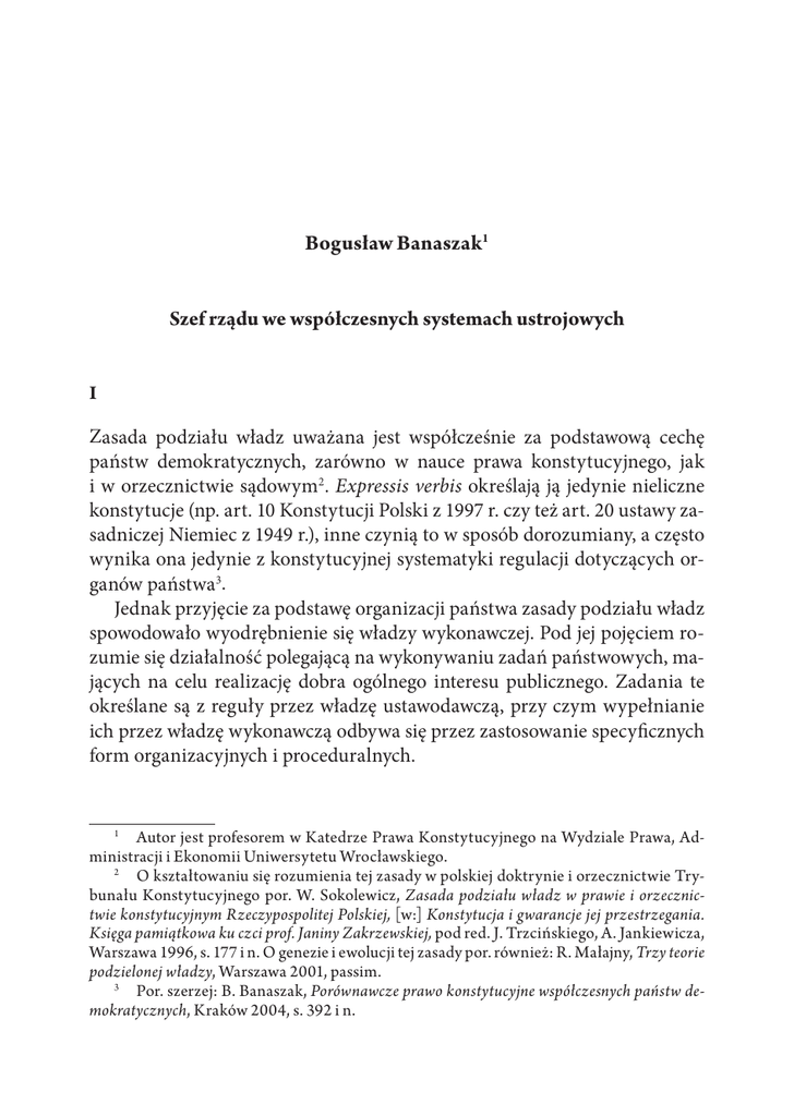 Bogusław Banaszak1 Szef rządu we współczesnych systemach
