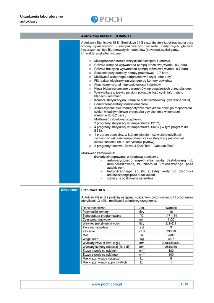www.poch.com.pl Autoklawy klasy S, COMINOX Urządzenia
