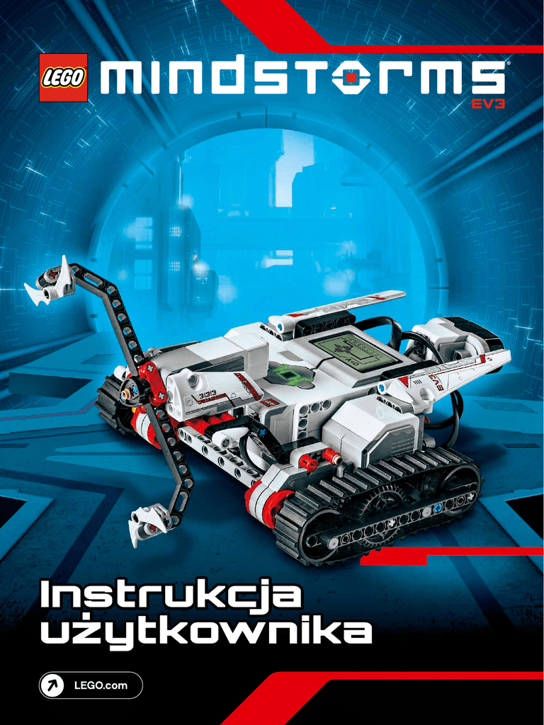 Instrukcja ' ytkownika uz Spis TREśCI Wprowadzenie +Witamy ......................................................................................................................................................... 3 Technologia EV3 +Przegląd ..................................................................................................................................................... + EV3 Brick (klocek EV3) .......................................................................................................... Przegląd ..................................................................................................................................................... Instalowanie baterii ..................................................................................................................... Włączanie klocka EV3 Brick ........................................................................................... + EV3 Motors (silniki EV3) ....................................................................................................... Large Motor (duży silnik) ..................................................................................................... Medium Motor (średni silnik) ......................................................................................... + EV3 Sensors (czujniki EV3) .............................................................................................. Color Sensor (czujnik kolorów) ................................................................................... Touch Sensor (czujnik dotykowy) ............................................................................ Infrared Sensor (czujnik podczerwieni) ........................................................... Remote Infrared Beacon (zdalny naprowadzający nadajnik podczerwieni) ......................................................................................................... + Podłączanie technologii EV3 ....................................................................................... Podłączanie czujników i silników ............................................................................. Podłączanie klocka EV3 Brick do komputera ....................................... + EV3 Brick Interface (interfejs klocka EV3) ................................................ Run Recent (Uruchamiane ostatnio) ................................................................... File Navigation (Poruszanie się wśród plików) ...................................... Brick Apps (Aplikacje klocka) ....................................................................................... Settings (Ustawienia) ................................................................................................................ 4 5 5 8 9 10 10 10 11 11 12 13 13 15 15 16 21 21 21 22 26 Oprogramowanie EV3 +Minimalne wymagania systemowe .................................................................... + Instalowanie oprogramowania .................................................................................. +Lobby (Hol) ............................................................................................................................................. +Właściwości i struktura projektu ............................................................................ + Robot Missions (Misje robotów) ............................................................................... +Programowanie ............................................................................................................................... + Hardware Page (Karta sprzętu) ............................................................................... +Content Editor (Edytor zawartości) ..................................................................... + Tools (Narzędzia) .......................................................................................................................... 30 30 31 32 34 35 38 40 41 Rozwiązywanie problemów Przydatne informacje + EV3 Software Help (pomoc do oprogramowania EV3) ........... + Software Updates (aktualizacje oprogramowania) ...................... +Firmaware Update (aktualizacja oprogramowania układowego) ....................................... + Resetowanie klocka EV3 Brick ................................................................................. 43 43 44 45 + Sound File List (Lista plików dźwiękowych) .......................................... + Image File List (Lista plików obrazów) ........................................................... +Brick Program App - Assets List (Aplikacja Program klocka — lista zasobów) ........................................ + Lista elementów ............................................................................................................................. LEGO.com/mindstorms LEGO, the LEGO logo, MINDSTORMS and the MINDSTORMS logo are trademarks of the/ sont des marques de commerce de/son marcas registradas de LEGO Group. ©2013 The LEGO Group. 041329. 46 51 55 56 s. 2 Wprowadzenie Witamy Witaj w świecie klocków LEGO® MINDSTORMS® W tym zestawie robotycznym LEGO® MINDSTORMS® EV3 otrzymujesz wszystko, czego potrzeba, aby tworzyć tysiące robotów LEGO i wydawać im rozkazy. Jeśli nie masz jeszcze doświadczenia w budowaniu robotów LEGO MINDSTORMS, najlepiej zacznij od zbudowania jednej z pięciu fajnych postaci robotów przedstawionych na opakowaniu EV3. W sekcji Robot Missions (Misje robotów) w oprogramowaniu programistycznym EV3 znajdziesz instrukcje budowania oraz przykłady programowania tych robotów. Roboty te zostały stworzone przez projektantów LEGO MINDSTORMS, aby zademonstrować pewne sposoby budowania i programowania przy użyciu systemu robotycznego LEGO MINDSTORMS EV3. Zanim się zorientujesz, zamienisz własne modele LEGO w żywe roboty wszelkich typów, zachowujące się na wiele różnych sposobów! Dzięki LEGO MINDSTORMS EV3 zbud