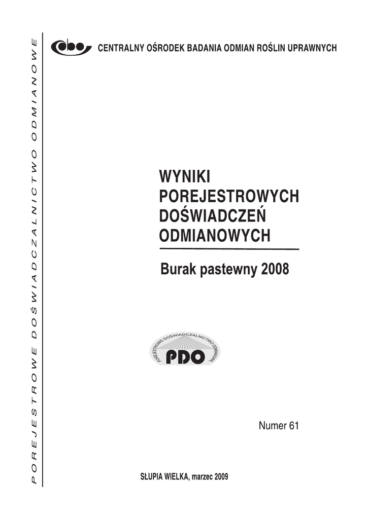 Burak pastewny 2008. Wyniki porejestrowych doświadczeń