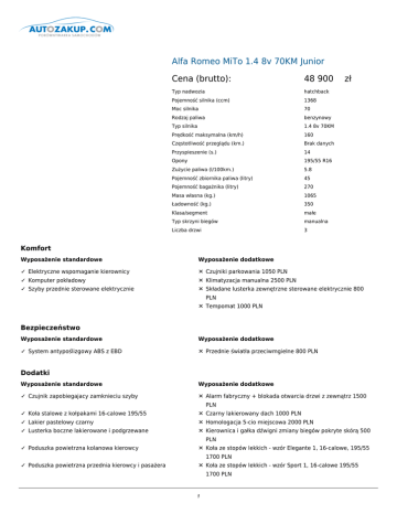 Alfa Romeo MiTo 1.4 8v 70KM Junior Cena (brutto