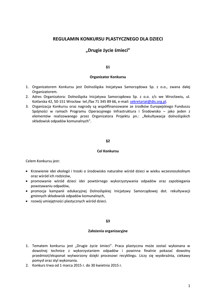 Regulamin konkursu - Dolnośląska Inicjatywa Samorządowa Sp. z oo