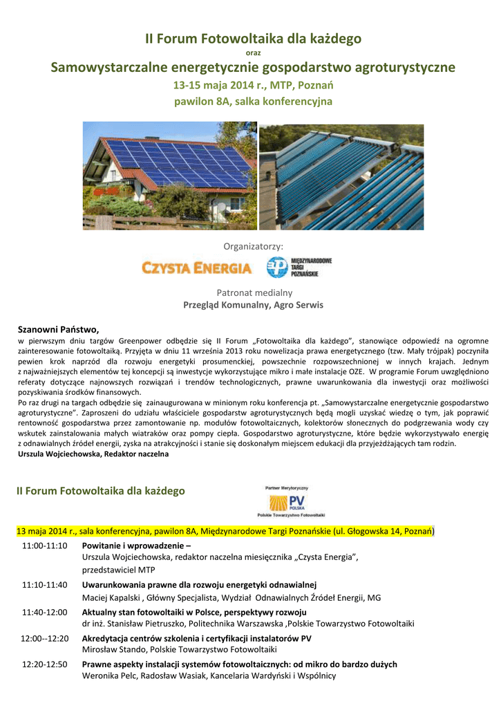 II Forum Fotowoltaika dla każdego Samowystarczalne