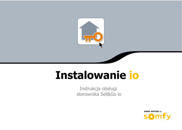 Instalowanie io Instrukcja obsługi sterownika Set&Go io Set&&Go Goio io Set PRZYRZĄD DO INSTALOWANIA WSZYSTKICH URZĄDZEŃ io-homecontrol® STEP 1 LOOK FOR THE INSTALLATION USING AUTOSCAN ? - Set&Go io - V1.0 my installation Equipments (0-12 / 27) 1 Pobierz program Set&Go io dla Twój pomocnik dla Twojego komputera ze strony: udanych instalacji w w w . s o m f y p r o . c o m / S e t -G o autoscan 1 Run Set&Go io, then click on urządzeń za pomocą AUTOSCAN. komputera. All Sunea SET 1W 3 i SET External Venetian Blind 1 i NOT SET Terrace add control SORTING Roller shutter bedroom1 SET i SET 1W Door lock pair i i add TaHoma 2 Dołącz wtyk odbiornika do komputera. ? 3 All motors and receivers forming your installation appear on screen. 2 Press on the “KEY“ button of your control for 2 seconds with feedback to obtain the installation key. Repeat this operation for each remote control or io control unit in the house. i SET Roof window External Venetian Blind 2 i Light kitchen i Set&Go io ETAP 1 WYSZUKANIE URZĄDZEŃ ZA POMOCĄ The ins alla ion ool for all io-homecon rol® si es Your guide for success with every io installation from a PC AUTOSCAN ? - Set&Go io - V1.0 my installation Equipments (0-12 / 27) 1 Download the Set & Go io application to your PC or Notebook from: www.somfypro.com/Set-Go All Sunea autoscan 1 Uruchom Set&Go io, a następnie kliknij w Autoscan SET 1W 3 i SET External Venetian Blind 1 i NOT SET Terrace add control SORTING Roller shutter bedroom1 External Venetian Blind 2 i SET Light kitchen i SET 1W Roof window i SET Door lock pair i i i add TaHoma 2 Connect the USB io receiver to your PC or notebook. ? 3 Wszystkie zainstalowane napędy i odbiorniki zostaną pokazane na ekranie. 2 Naciśnij na pilocie przycisk "KEY" na 2 sekundy, dla pobrania klucza instalacyjnego. Powtarzaj tę czynność z każdym posiadanym pilotem lub kontrolerem io. Equipments (0-12 / 27) SORTING All my installation nstallation ments (0-12 / 27) All 1WSORTING3 SET Sunea SET 1W i 3 i NOT SET Terrace add control External Venetian Blind 1 Roller shutter bedroom1 Sunea External Venetian Blind 2 i SET SET 1W Terrace Door lock add TaHoma i i REGLAGES "Roller shutter bedroom 1" my installation Equipments (0-12 / 27) add T TaHoma Sens Sunea moteur SORTING tous Mode de réglage Terrace i autoscan Roller shutter bedroom1 Fin de course haut SET 1W 3 i ? ? < 1 Fin de i 2 3 appui maintenu SET SET Roof window > >> Door lock i i i i Zatwierdź wybór transfer valider Porada: W kazdej chwili możliwy jest powrót do napędu w celu dokonania zmiany jego ustawień. ? 3 Wykonaj tę czynność dla każdego nie ustawionego napędu. autoscan 3 SET 1W Roof window add control i add TaHoma External Venetian Blind 2 i SET SET i i Door lock Door lock i SET i SET i Door lock i i i Door lock ? SET - Set&Go io - V1.0 i NOT SET pair i i Terrace Roof window i SET 3 Roof window i SET 1W control i ...then click the “pair“ button. External Venetian Blind 2 i SET 2 Select control model you want to assign to this motor. TRANSFER EQUIPMENTS TO A REMOTE CONTROL my installation Equipments (0-12 / 27) autoscan SET 1W SET 1W Roller shutter 1 Choose motor or receiver to be paired... bedroom1 Light kitchen Light kitchen i Light kitcheni External Venetian Blind 2 SET i add 1 External Venetian Blind 1 i i External NOT SET Venetian Blind 1 Terrace i SET SORTING Roller shutter bedroom1 ? >add Wybierz kierunek obrotów TaHoma > Tryb pracy ręczny, pół-automatyczny, automatyczny > Ustaw górne i dolne położenie krańcowe transfer Repeater ! SET Roller shutter bedroom1 autoscan NOT SET i i par incrément 1. Positionnez le volet roulant en fin de course bas grâce aux commandes ci-contre Valider le réglage en cliquant sur "valider" Sensor box2.(1) Sensor box 3 i i SET SET add Light kitchen i SET 1W SET ...kliknij ikonę dla otwarcia SET 1W ekranuTerrace z ustawieniami. Validation External Venetian course bas Blind 1 i SET Repeater Fin de couse(1) bas add TaHoma i External Venetian Blind 2 i << Fin de course haut 1W 3 NOT SET Utilisez lesSETcommandes pour réaliser votre réglage add control External Venetian Blind 21W 3 Blind 1 External Venetian 2 Posługując się intuicyjnym interfejsem Roof window Blind 2 kontynuuj wybieranie parametrów: ? - Set&Go io - V1.0 All ? Sunea i my installation Equipments (0-12 / 27) All SET 1W SORTING Equipments (0-12 / 27) ustawionych. (pomarańczowa ikona «NOT SET» ) Venetian External control Terrace i 1 Rozpoznanie urządzeń jeszcze nie Sunea autoscan i NOT SET - Set&Go io - V1.0 SORTING All STEPVenetian 3 External Blind 1 Sunea Roller shutter i bedroom1 SET ? NOT SET pair i add T 1W 3 control SET Roof window i SET Light kitchen i SORTING my installation i my installation Equipments (0-12 / 27) autoscan All ? - Set&Go io - V1.0 autoscan ? kitchen Equipments (0-12Light / 27) CONTROL UNITS PAIR Sunea RollerURZĄDZENIA shutter - Set&Go io - V1.0 INSTALOWANIE PO KOLEJI KAŻDEGO bedroom1 ETAP 2 i Terrace << < 1 External Venetian Blind 1 Systeme 18 : 30 2 3 > >> Light kitchen System Ouvrir Somfy 2 3 SET 1W i SET11W Telis io 3 i i c ok i NOT SET Roller shutter bedroom1 add TaHoma add control SORTING tous Sunea i i c ok i Roof window External Venetian Blind 2 i SET Door lock i transfer i iEasy SunSETio SET 1W Impressario Chronis io i Telis Composio io Keytis 4 io i Repeater (1) Repeater Select above, the remote control transmitter to which tou want to tranfer the end-products and Click on "OK". add Before TaHoma selecting it, check the logo at the backside of the remote to know its type (1W or 2W). The logo printed has to fit to the one displayed with the remote on the picture above. Sensor box (1) ? transfer Sensor box yes 3 OK ! i no cancel cancel 3 Click the “prog“ button to prompt the remote control. SET 1W Equipments (0-12 / 27) nstallation SET STEP 2 EACH Sunea PRODUCT INDIVIDUALLY ments (0-12 / 27) autoscan All 1WSORTING3 SET Sunea Sunea SET 1W i 3 i NOT SET Terrace add control External Venetia