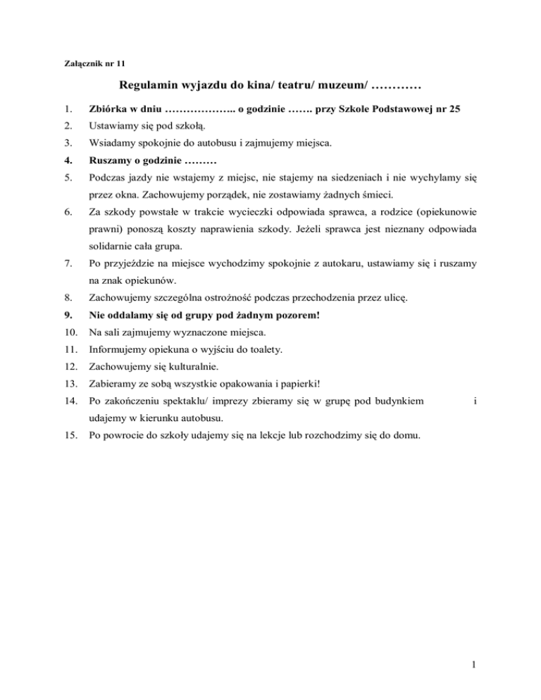 REGULAMIN WYJAZDU NA IMPREZĘ KULTURALNĄ (kino/teatr