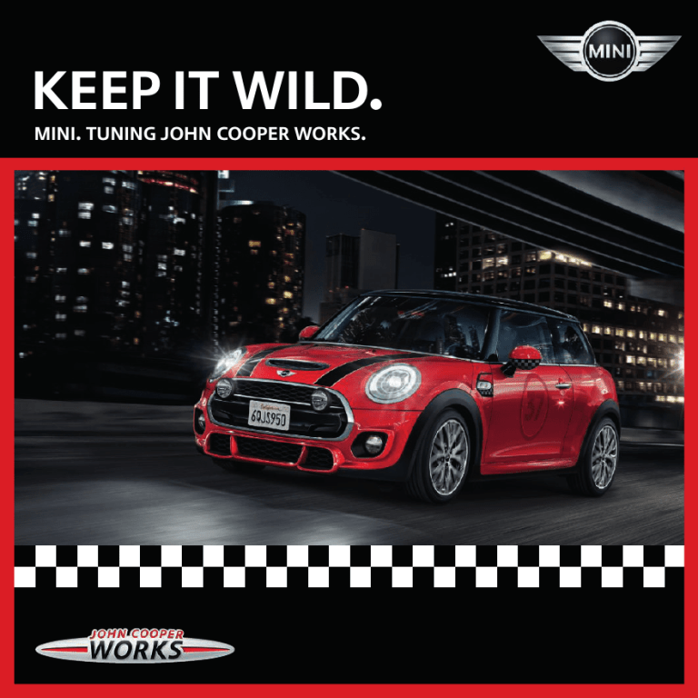 Keep it wild. MINI. TUNING JOHN COOPER WORKS. PRZECIWNY WIATR NIE MA ŻADNYCH SZANS. Gdy jeździsz MINI z tuningiem John Cooper Works, nie masz praktycznie żadnych przeciwników. Rozbudowany pakiet aerodynamiczny sprawia, że nawet silny przeciwny wiatr wypada blado. CHCĘ WIĘ EJ. HCĘ WIĘC Już samo „spojrzenie” samochodu jest wyrazem pewności siebie i sportowego charakteru – pas przedni z czarną kratką wentylacyjną podkreśla atletyczny wygląd Twojego MINI. Dalej też jest imponująco – polakierowane w kolorze nadwozia progi tworzą dynamiczne linie w dolnej części boków auta. Doskonałym dopełnieniem pakietu aerodynamicznego jest wyraziste poszycie zderzaka tylnego z czarnymi lamelami. Oferowany dodatkowo spojler tylny gwarantuje, że konie mechaniczne zawsze kierowane będą dokładnie tam, gdzie powinny – na drogę. Masz ochotę na coś ekstra? Skorzystaj z naszej szerokiej i różnorodnej oferty obręczy kół ze stopów lekkich i zapewnij swojemu MINI jeszcze więcej sportowej atrakcyjności. Obudowy lusterka wewnętrznego i lusterek zewnętrznych John Cooper Works Pro gwarantują z kolei jeszcze więcej indywidualnej oryginalności. Nie wystarczy? Nie ma sprawy – polecamy pasy na maskę silnika oraz pasy Side Stripes John Cooper Works Pro Racing, a także motywy dachowe John Cooper Works Pro. Wciąż za mało? W takim razie jako ostatni szlif proponujemy osłonę wlotu powietrza John Cooper Works Pro z karbonu – nie tylko na tor wyścigowy. Teraz pozostaje już tylko uruchomić silnik i odjechać w sobie tylko znanym kierunku. 44 1 Zdjęcie na stronie tytułowej: Pakiet aerodynamiczny John Cooper Works Osłona wlotu powietrza John Cooper Works Pro z karbonu Obudowy lusterek zewnętrznych John Cooper Works Pro Obudowa lusterka wewnętrznego John Cooper Works Pro Pasy Side Stripes John Cooper Works Pro Racing Pasy na maskę silnika Obręcz koła ze stopów lekkich John Cooper Works Pro w stylistyce Cross Spoke w kolorze Jet Black, polerowana na wysoki połysk 2 55 3 WIĘCEJ DUCHA WYŚCIGÓW. Szybko do rzeczy: Wybitnie sportowy charakter MINI po tuningu John Cooper Works wyraźnie widać już na pierwszy rzut oka. To między innymi zasługa umieszczonego na masce silnika wlotu powietrza z osłoną z karbonu powleczonego lakierem bezbarwnym, który od razu sygnalizuje, że nieposkromiona siła wymaga dodatkowej porcji świeżego powietrza. W połączeniu z obudowami lusterek zewnętrznych John Cooper Works Pro z karbonu sylwetka MINI nabiera bezkonkurencyjnie wyrazistego i sportowego charakteru. I to poza torem wyścigowym. WIĘCEJ KOMFORTU. To proste: Designerska osłona kluczyka z wbudowanym chipem NFC poprzez proste dotykanie umożliwia sterowanie wszystkimi komponentami programowymi smartfona z obsługą NFC, takimi jak np. regulacja głośności, WiFi, Bluetooth czy zainstalowane aplikacje. Wszystkie polecenia można cofnąć ponownym dotknięciem. Działa doskonale – i dobrze wygląda. Ponadto dostępny jest atrakcyjny wizualnie breloczek, który dzięki wyrafinowanemu zatrzaskowi daje się łatwo przyczepić i pasuje wyłącznie do kluczyka MINI. Osłona wlotu powietrza John Cooper Works Pro z karbonu Obudowy lusterek zewnętrznych John Cooper Works Pro z karbonu Dywaniki uniwersalne John Cooper Works Pro Listwy progowe LED John Cooper Works Pro Kierownica sportowa John Cooper Works Osłona kluczyka i breloczek John Cooper Works Pro PRZEGLĄD DALSZYCH AKCESORIÓW. STYLISTYKA ZEWNĘTRZNA. Cross Spoke w kolorze Jet Black, polerowana na wysoki połysk, rozmiar J x cali Pasy na maskę silnika Osłona wlotu powietrza John Cooper Works Pro z karbonu Pasy Side Stripes John Cooper Works Pro w kolorze Jet Black Pasy Side Stripes John Cooper Works Pro w kolorze Chili Red Osłona kluczyka i breloczek John Cooper Works Pro Dywaniki uniwersalne John Cooper Works Pro Dywaniki tekstylne John Cooper Works Pro Koc wielofunkcyjny John Cooper Works Pro Obudowy lusterek zewnętrznych John Cooper Works Pro z karbonu STYLISTYKA WNĘTRZA. Osłony przeciwsłoneczne John Cooper Works Pro Przedstawione modele mogą zawierać elementy wyposażenia dodatkowego wykraczające poza standardowe wyposażenie pojazdu. Zastrzegamy sobie prawo do zmian konstrukcji, wyposażenia i treści oraz do ewentualnych błędów drukarskich i pomyłek. © BMW AG, Monachium/Niemcy. Przedruk, również we fragmentach, dozwolony tylko za pisemną zgodą BMW AG, Monachium. Numer katalogowy , BB-. Wydrukowano w Niemczech /. Więcej informacji oraz Oryginalnych Akcesoriów John Cooper Works można znaleźć pod adresem www.MINI.com.pl www.facebook.com/MINI.Polska 02 03