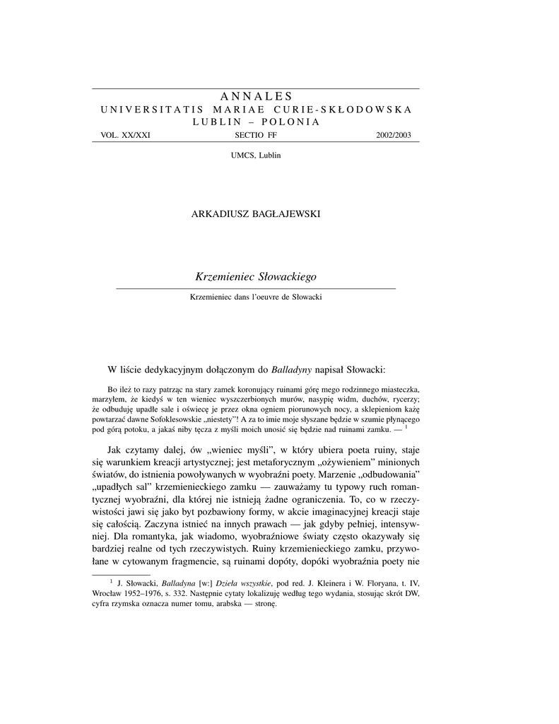 ANNALES Krzemieniec Słowackiego - Annales UMCS