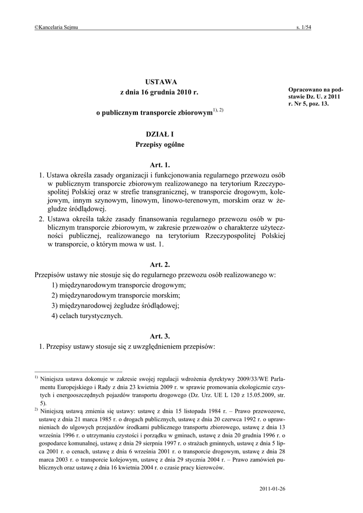 USTAWA z dnia 16 grudnia 2010 r. o publicznym transporcie