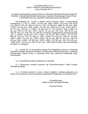 UCHWAŁA NR IV/11/11 RADY POWIATU ZDUŃSKOWOLSKIEGO z