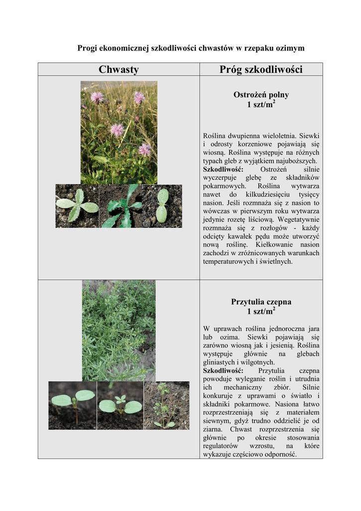Chwasty Próg szkodliwości