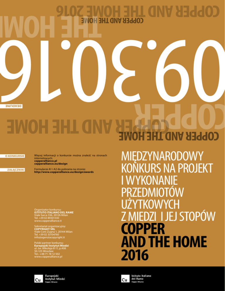 COPPER AND THE HOME 2016 the hom COPPER AND THE HOME 9.30.1 COPPER AND THE HOME OPPER deadline COPPER AND THE HOME O KONKURSIE ZAŁĄCZNIKI Więcej informacji o konkursie można znaleźć na stronach internetowych: copperalliance.pl copperalliance.eu/design Formularze A1 i A2 do pobrania na stronie: http://www.copperalliance.eu/design/awards Organizator konkursu: ISTITUTO ITALIANO DEL RAME Viale Sarca 336, 20126 Milan Tel. +39 02 89301330 www.copperalliance.it Sekretariat organizacyjny: COPYRIGHT SRL Viale Coni Zugna 1, 20144 Milan Tel. +39 02 33104760 [email protected] Polski partner konkursu: Europejski Instytut Miedzi ul. św. Mikołaja 8-11, p.408 50-125 Wrocław Tel.: +48 71 78 12 502 www.copperalliance.pl MIĘDZYNARODOWY KONKURS NA PROJEKT I WYKONANIE PRZEDMIOTÓW UŻYTKOWYCH Z MIEDZI I JEJ STOPÓW COPPER AND THE HOME 2016 PRZEDMIOT KONKURSU KRYTERIA PROJEKTOWE Przedmiotem konkursu jest projekt i wykonanie przedmiotu użytkowego z miedzi lub jej stopów (np. mosiądzu, brązu, miedzioniklu). Wszystkie zgłoszone prace mają służyć dekoracji wnętrza domu. Do konkursu można zgłaszać przedmioty przeznaczone zarówno do dekoracji domów i mieszkań, jak i biur, sklepów, szkół, szpitali oraz budynków publicznych. Zgłoszone przedmioty powinny należeć do jednej z poniższych kategorii: • Meble (krzesła, stoły, stoliki na kółkach, stoliki kawowe, regały); • Akcesoria meblowe (wieszaki na ubrania, stojaki na czasopisma, przegrody, ramy do obrazów, wazy) • Sprzęt kuchenny i zastawa stołowa (garnki, podgrzewacze do żywności, foremki do ciast, szklanki itp.); • Okładziny i dekoracje (okładziny ścienne, ściany działowe, parawany, drzwi); • Elementy funkcjonalne (grzejniki, lampy, wyłączniki prądu); • Elementy techniczne (klamki, krany, poręcze). Dopuszcza się zastosowanie innych materiałów, jednak miedź lub stopy miedzi muszą stanowić najważniejszy materiał konstrukcyjny. Projekty niespełniające powyższych kryteriów nie będą dopuszczone do konkursu. Do konkursu mogą być także zgłaszane projekty będące w trakcie opracowania, które nie zostały wprowadzone na rynek przed upływem terminu przyjmowania zgłoszeń, tj. 30 września 2016 r. WYMAGANE DOKUMENTY Wraz ze zgłoszeniem należy dołączyć następujące dokumenty (w przypadku grupy dotyczy wszystkich członków grupy): Kopię ważnego dowodu tożsamości lub paszportu; Podpisaną zgodę na przetwarzanie danych osobowych (Formularz A1, dostępny na www.copperalliance.eu/design/ awards); Adres e-mail (w celu otrzymania potwierdzenia zgłoszenia i dalszych wiadomości od organizatora). DOKUMENTY DODATKOWE - STUDENCI Oprócz dołączenia wyżej wymienionych dokumentów, każdy student musi załączyć potwierdzenie, że jest zapisany na wymagany przez organizatora kierunek studiów oraz pisemne oświadczenie prowadzącego zajęcia (lub jego przełożonego), iż jest koordynatorem zgłaszanego projektu (Formularz A2, dostępny na www.copperalliance.eu/design/awards ); JURY Zespół jurorów to specjaliści w dziedzinie architektury i wzornictwa: • Philippe Bestenheider – Projektant wzornictwa • Diego Grandi – Architekt i projektant wzornictwa • Marco Romanelli – Architekt i krytyk Projekt musi eksponować walory techniczne, estetyczne i potencjał ekspresji miedzi (lub jej stopów) oraz powinien nadawać się do masowej produkcji. Prace będą rozpatrywane i oceniane w formie anonimowej. Jury sporządzi protokół z przebiegu swoich obrad, a decyzja Jury będzie ostateczna. Po zakończeniu obrad Jury, organizator powiadomi zwycięzców za pośrednictwem e-mail. Przy ocenie prac Jury będzie również brało pod uwagę innowacje technologiczne związane z procesem produkcji przedmiotu. WARUNKI UDZIAŁU Do udziału w konkursie zapraszamy młodych projektantów oraz studentów wzornictwa – górna granica wiekowa to nieukończone 40 lat w dniu 30 września br. NAGRODY W konkursie wyróżnia się 2 kategorie uczestników: • Projektanci i architekci – osoby indywidualne lub zespoły, jak również osoby z wyższym wykształceniem, które związane są zawodowo z projektowaniem czy architekturą. • Studenci wyższych uczelni z kierunków: grafika, architektura wnętrz czy wzornictwo oraz studenci wydziałów architektury i architektury wnętrz, którzy studiują na studiach doktoranckich, magisterskich lub innych równoważnych, koordynowanych przez co najmniej jednego nauczyciela akademickiego. Tak jak w przypadku projektantów można brać udział indywidualnie lub grupowo. DEADLINE NA ZGŁASZANIE PRAC ZASADY OGÓLNE Projekty muszą być zgłoszone w terminie do 30 września 2016 r. (data wysłania maila będzie traktowana, jako potwierdzenie terminu zgłoszenia). W kategorii studentów • Nagroda: 1 500 EUR Uczelnia, która przeprowadzi zajęcia najbardziej związane z przedmiotem konkursu, zostanie uhonorowana specjalną plakietką. Oprócz wymienionych nagród, Jury może przyznawać nagrody ex aequo oraz specjalne wyróżnienia. CEREMONIA WRĘCZENIA NAGRÓD Miejsce i data ceremonii wręczenia nagród zostaną potwierdzone w późniejszym terminie. WŁASNOŚĆ INTELEKTUALNA Autorzy projektów ponoszą wyłączną odpowiedzialność z tytułu naruszenia wszelkich praw autorskich lub praw własności intelektualnej. Prawa własności intelektualnej do projektów zgłoszonych przez osoby zatrudnione przez stronę trzecią są regulowane przez właściwe umowy o pracę tych osób. W przypadku oczywistego naruszenia prawa autorskiego lub prawa własności intelektualnej Organizator natychmiast wykluczy projekt z konkursu. Udział w konkursie jest bezpłatny. Wysłanie projektu przed podaną wyżej datą (30 września 2016r.) jest równoznaczne ze zgłoszeniem uczestnictwa w konkursie. Do wszystkich zgłoszeń/projektów należy dołączyć opis techniczny z uzasadnieniem zastosowania miedzi lub jej stopów, w formie pliku Word lub PDF, o objętości nie większej ni