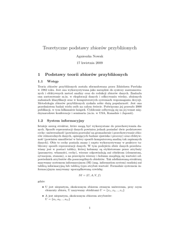 atrybutów). Zbiór ISI,B (x) zawiera zaś te wszystkie obiekty systemu informacyjnego SI, które są nierozróżnialne z obiektem x względem zbioru atrybutów