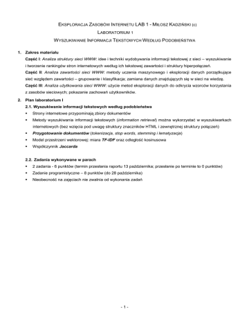 - 1 - EKSPLORACJA ZASOBÓW INTERNETU LAB 1