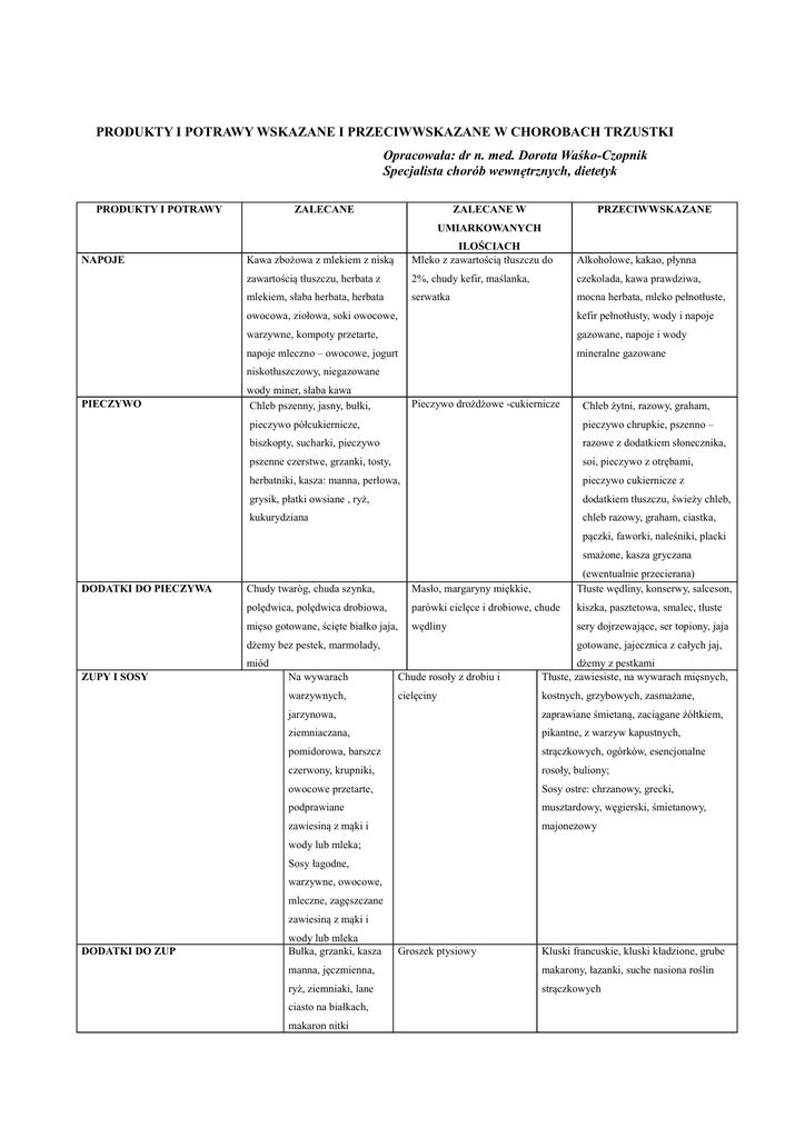 PRODUKTY I POTRAWY WSKAZANE I PRZECIWWSKAZANE W