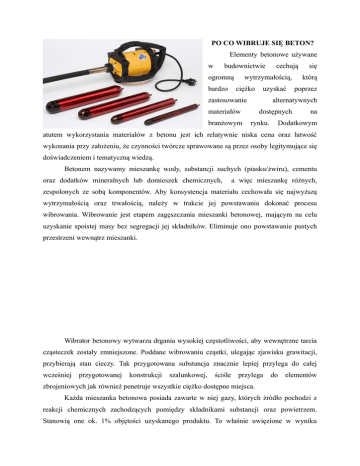 PO CO WIBRUJE SIĘ BETON? Elementy betonowe używane w budownictwie ogromną bardzo cechują wytrzymałością, ciężko uzyskać zastosowanie którą poprzez alternatywnych materiałów branżowym się dostępnych rynku. na Dodatkowym atutem wykorzystania materiałów z betonu jest ich relatywnie niska cena oraz łatwość wykonania przy założeniu, że czynności twórcze sprawowane są przez osoby legitymujące się doświadczeniem i tematyczną wiedzą. Betonem nazywamy mieszankę wody, substancji suchych (piasku/żwiru), cementu oraz dodatków mineralnych lub domieszek chemicznych, a więc mieszankę różnych, zespolonych ze sobą komponentów. Aby konsystencja materiału cechowała się najwyższą wytrzymałością oraz trwałością, należy w trakcie jej powstawania dokonać procesu wibrowania. Wibrowanie jest etapem zagęszczania mieszanki betonowej, mającym na celu uzyskanie spoistej masy bez segregacji jej składników. Eliminuje ono powstawanie pustych przestrzeni wewnątrz mieszanki. Wibrator betonowy wytwarza drgania wysokiej częstotliwości, aby wewnętrzne tarcia cząsteczek zostały zmniejszone. Poddane wibrowaniu cząstki, ulegając zjawisku grawitacji, przybierają stan cieczy. Tak przygotowana substancja znacznie lepiej przylega do całej wcześniej przygotowanej konstrukcji szalunkowej, ściśle przylega do elementów zbrojeniowych jak również penetruje wszystkie ciężko dostępne miejsca. Każda mieszanka betonowa posiada zawarte w niej gazy, których źródło pochodzi z reakcji chemicznych zachodzących pomiędzy składnikami substancji oraz powietrzem. Stanowią one ok. 1% objętości uzyskanego produktu. To właśnie uwięzione w wyniku wylewania masy betonowej powietrzne pęcherze mogą w sposób destrukcyjny oddziaływać na parametry mieszanki. Proces wibrowania powoduje wypłynięcie gazów na powierzchnię i tym samym usunięcie ich z głębszych warstw betonowych. Stosowanie betonów o bardziej suchej konsystencji (uzyskanych w wyniku zmniejszenia proporcji wody w stosunku do cementu) sprawia, że wibrator staje się narzędziem wręcz niezbędnym na każdym placu budowy. Długość wibrowania należy precyzyjnie dobrać do rodzaju mieszanki betonowej, gdyż nadmierne oddziaływanie może doprowadzić do akumulacji żwiru oraz do opadania cięższych elementów mieszanki betonowej do spodniej warstwy konstrukcji. W takiej sytuacji lżejsze składniki przenoszone są ku górze, co doprowadzić może do nieregularnej kurczliwości materiału oraz do powstawaniu szczelin w poszczególnych jego warstwach. Użycie wibratora umożliwia uzyskanie spoistości pomiędzy partiami mas betonowych przygotowanych w odstępach czasowych, co pozytywnie wpływa na proces produkcji materiału. Ten zaś, na skutek poddania się analizowanemu tu oddziaływaniu, staje się jednorodny, wytrzymały, nieprzepuszczalny, pozbawiony szczelin i dziur . Wibrowanie ma więc istotny wpływ na jakość finalną betonu.