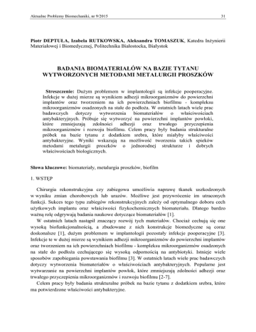 badania biomateriałów na bazie tytanu wytworzonych metodami