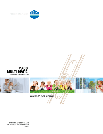 TECHNIKA KTÓRA PORUSZA MACO MULTI-MATIC TECHNIKA ZABEZPIECZEŃ Wolność bez granic! TECHNIKA ZABEZPIECZEŃ DLA OKIEN DREWNIANYCH I PVC MACO MULTI-MATIC „Okazja czyni złodzieja“ ... mówi stare przysłowie i dokładnie o takich złodziei, względnie włamywaczy chodzi, którzy wyszukują sobie spontanicznie przede wszystkim w dzień pomiędzy 12.00 a 20.00 obiekty, które nie są dla nich przeszkodą. Okucia MACO skutecznie zapobiegają włamaniom! 2 MACO MULTI-MATIC (Spontaniczny) włamywacz (nie) znana istota?! Którędy dokonuje się włamań? Droga włamywacza według statystyki prowadzi w ponad 80% przez okno lub przez drzwi tarasu, nie jak się błędnie myśli przez drzwi wejściowe w domu lub w mieszkaniu. LEGENDA Drzwi tarasowe 41 % Okna na parterze 28,7 % Drzwi wejściowe 12,4 % Okna do piwnicy 4,9 % Drzwi do piwnicy 3,2 % Drzwi balkonowe 6,5 % Drzwi boczne 2,2 % Okna na piętrze 1,1 % Jak dokonuje się włamania? Włamywacze mogą względnie szybko wyważyć okno za pomocą prostych narzędzi. Prawie 70% włamań popełnia się za pomocą śrubokręta o szerokości od 6 do 12 mm. LEGENDA Podważenie okna 73,68 % Uszkodzenie zawiasów 3,80 % Okno uchylone 13,51 % Okno otwarte 1,55 % Przecięcie szyby 0,62 % Wybicie szyby 4,81 % Przemoc cielesna 1,16 % Przewiercenie ramy 0,62 % 3 MACO MULTI-MATIC • Łatwo pracujące dzięki wysoko wytrzymałym materiałom i powłoce ślizgowej. • Możliwa współpraca z zaczepem standardowym lub z zaczepem utrudniającym włamanie. • i.S. spełnia wymagania EN 1627 - 1630 (RC 1 N - RC 4) i DIN 18104 część 2 10 mm • Bez ustawiania. Dopasowują się samodzielnie do luzu wrębowego (± 2 mm). 14 mm i.S. = inteligentne bezpieczeństwo Normalny czop zamykający Możliwe wyważenie bez problemów. Czop utrudniający włamanie i.S. Okucia okienne z czopami i.S. i z zaczepami utrudniającymi włamanie znacznie zmniejszają możliwość wywarzenia. 4 MACO MULTI-MATIC Zaczepy utrudniające włamanie • Całkowicie stabilne dzięki specjalnemu połączeniu wysokogatunkowych materiałów i kosztownemu procesowi odlewania ciśnieniowego. • Zaczepy i.S w oknach PVC przykręcane do wzmocnienia. • Mocowanie zaczepów i.S. w oknach drewnianych dwa wkręty prosto i jeden pod kątem. Docisk • Regulacja docisku na czopie i.S. Docisk regulowany za pomocą klucza TX 15 Przylga Docisk lekki Pozycja prostej powierzchni przy mimośrodzie jest ustawieniem podstawowym. Docisk mocny 5 MACO MULTI-MATIC Bezpieczne klamki • Możliwe do zablokowania i do zamknięcia klamki okienne, podwyższają bezpieczeństwo każdego okna. • Klamki okienne MACO są dostępne w trzech różnych wersjach w wielu kolorach. Klamki z kluczykiem lub przyciskiem Klamki zabezpieczają przed ... Wyważeniem skrzydła Przesunięciem okuć Przekręceniem klamki z pozycji uchylonej (trik ze sznurkiem) Wybiciem szyby i przekręceniem klamki ręką Przewierceniem ramy do trzpienia klamki Przewierceniem ramy i przekręceniem klamki prętem Dodatkowy komfort Zawsze automatycznie zablokowane • Nie zapobiegają wyważeniu skrzydła. 6 • Komfort dzięki różnemu wykorzystaniu, np. zastosowanie w pokoju dla dzieci. Klamka zwykła Z przycis kiem Z kluczy kiem MACO MULTI-MATIC Extra ochrona przed niepożądanym dostępem! Klamki okienne MACO „TRESOR“ • 100 Nm wytrzymałości przed zerwaniem ze skrzydła okiennego. Abdreh en • 100 Nm wytrzymałości przed przekręceniem zablokowanej klamki. Klamki MACO TRESOR oferują wyższe bezpieczeństwo niż przewidziano w normie PN - EN 1627 - 1630. Udostępniamy na zapytanie świadectwa badania. Abreißen TRESOR-S z przyciskiem Do wszystkich klas zabezpieczeń, z szybą utrudniającą włamanie. • Okno w każdej chwili może być obsługiwane. • Okno jest zawsze zaryglowane. • Nie potrzebny kluczyk. • Wysikie bezpieczeństwo dla małych dzieci. TRESOR-Z z kluczykiem Do klas RC 1N / RC 2N z standardową szybą i do wszystkich wyższych klas. • Nie możliwa obsługa przez wszystkie osoby (np. w budynkach użyteczności publicznej jak szkoły, szpitale). • Wysokie bezpieczeństwo dla dzieci. • Nawet po wycięciu szyby nie można przesunąć okucia. Spełnia wymagania normy DIN 18104-2. 7 MACO MULTI-MATIC MACO oferuje Państwu bezpieczeństwo ... Podstawowe zabezpieczenie MACO – nietestowane A • Ochrona ograniczona do niedoświadczonych przypadkowych włamywaczy i aktów wandalizmu. 8 B C • W tym przypadku zabezpiecza się pojedyncze naroża. W stosunku do konstrukcji okna i szkła, nie stawia się żadnych wymagań. D • W wielu oknach jeden lub dwa punkty zabezpieczające przed włamaniem są już standardem (np. zamknięcie uchylne poziome na dole okna). MACO MULTI-MATIC Bezpieczeństwo, które mogą zaoferować Państwo swoim klientom! EN - znormalizowane bezpieczeństwo • Okna produkowane zgodnie z normami, w zależności od klasy oporu (RC) oferują bezpieczeństwo przed okazjonalnymi i wykfalifikowanymi włamywaczami. • Norma EN 1627 - 1630 podzielona jest na sześć klas oporu (RC). Są one sensowne i wykonalne dla okien i drzwi balkonowych do klasy RC 3. • Od klasy RC 4 możliwe są do wykonania tylko specjalne konstrukcje. • Norma EN-V 1627 - 1630 obowiązuje w wielu krajach, takich jak Niemcy, Szwajcaria, Holandia, Belgia i Austria, jako norma narodowa. • Świadectwa testów są przeznaczone tylko dla wnioskodawcy (wytwórca okuć), lecz również mogą być przekazywane dalej w formie licencji. Raporty z badań wg DIN V ENV 1627 WK2 są nadal ważne. (RC) - Resistance class. 9 MACO MULTI-MATIC Dodatkowe usługi Szkolenia z zakresu bezpieczeństwa • Z certyfikatem ukończenia szkolenia i pełną dokumentacją. TECHNIK DIE Szkolenia z zakresu bezpieczeństwa- testy systemowe BEWEGT • Szkolenie z zakresu okien antywłamaniowych wg normy PN - EN 1627 - 1630. ngszertifikat MACO Schulu tner RC 2 Systempar Autorisierter RC Lizenznummer 1 N, RC 2 N und : Muster Verantwortlich: ende für einbruchhem