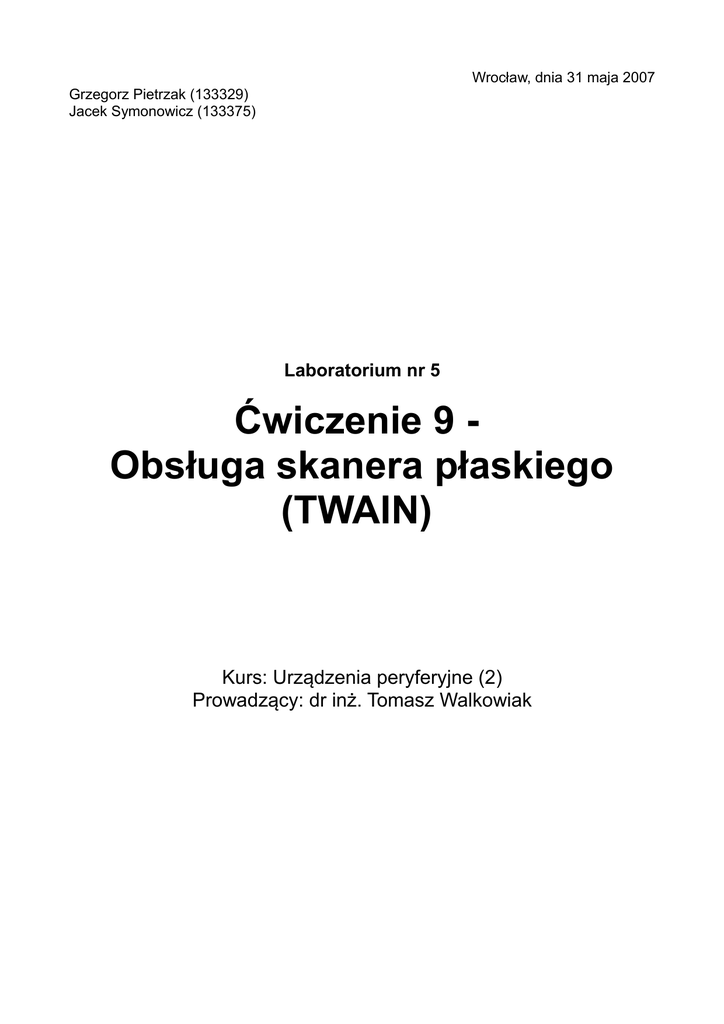 Ćwiczenie 9 - Obsługa skanera płaskiego (TWAIN)