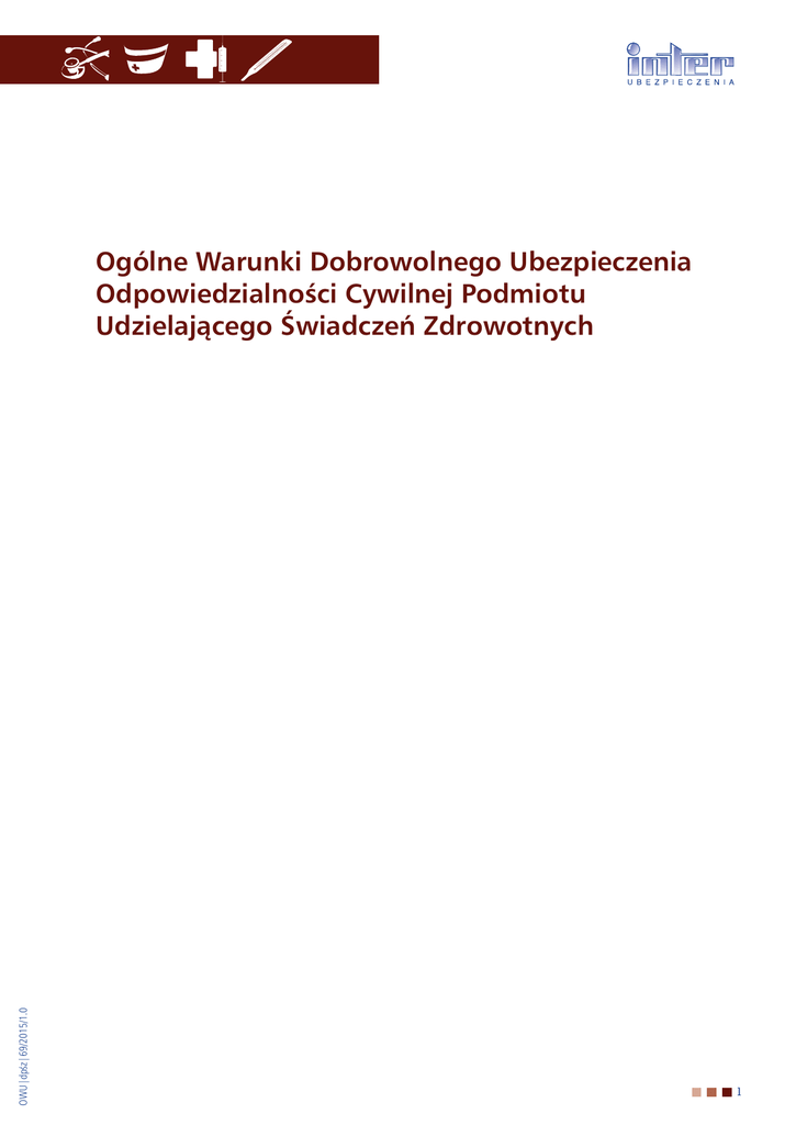 OWU|dpśz|69/2015/1.0 Ogólne Warunki Dobrowolnego Ubezpieczenia Odpowiedzialności Cywilnej Podmiotu Udzielającego Świadczeń Zdrowotnych 1 Informacja o ubezpieczeniu Rodzaj informacji Numer jednostki redakcyjnej wzorca umownego 1. Przesłanki wypłaty odszkodowania § 2 pkt 3), 5), 6), 7), 8), 9), 10), 11), 12), i innych świadczeń; 13), 14), 15) § 3, §7, §8, §14 ust.1, §15, §16, §17, §18 Klauzula nr 1 – ust. 1, 2, 4 Klauzula nr 1A – ust. 1, 5 Klauzula nr 2 – ust. 1, 2, 4 Klauzula nr 3 – ust. 1, 3 Klauzula nr 4 – ust. 1, 2 Klauzula nr 6 – ust. 1 i 2, 4 Klauzula nr 7 – ust. 1, 3 Klauzula nr 8 – ust. 1, 2, 3, 4 Klauzula nr 9 – ust. 1, 2, 3, 6, 7 2. Ograniczenia oraz wyłączenia odpowiedzialności zakładu ubezpieczeń uprawniające do odmowy wypłaty odszkodowania i innych świadczeń lub ich obniżenia. 2 §1 ust. 7 pkt 5), §2 pkt 1, 2, 4, §3 ust. 1, 2, 6, 7, 8, §4 §11 §12, §15 ust. 2, 3, 4, §18 ust. 4,7, §19 ust. 4 Klauzula nr 1- ust. 3 Klauzula nr 1A - ust. 2, 3, 4 Klauzula nr 2 ust. - 2, 3,4 Klauzula nr 3 ust. - 2 Klauzula nr 6 ust. - 1, 3 Klauzula nr 7 ust. - 2 Klauzula nr 8 ust. - 2, 3 Klauzula nr 9 ust. - 1, 2, 3, 4, 5, 6 POSTANOWIENIA OGÓLNE popełnione z pobudek politycznych, religijnych, ideologicznych lub etnicznych, §1 1. Na podstawie niniejszych ogólnych warunków ubezpieczenia, zwanych dalej „OWU”, Towarzystwo Ubezpieczeń INTER Polska S.A., zwane dalej „INTER Polska“, zawiera umowy ubezpieczenia odpowiedzialności cywilnej z osobami fizycznymi, osobami prawnymi lub jednostkami organizacyjnymi nie posiadającymi osobowości prawnej, zwanymi dalej „Ubezpieczającymi“. 2. Ubezpieczający może zawrzeć umowę ubezpieczenia odpowiedzialności cywilnej na swoją rzecz lub na cudzy rachunek. 3. Za porozumieniem stron do umowy ubezpieczenia mogą zostać wprowadzone postanowienia dodatkowe odbiegające od postanowień niniejszych OWU, pod warunkiem zamieszczenia stosownej adnotacji na polisie. 4. INTER Polska zobowiązane jest przedstawić Ubezpieczającemu różnicę między postanowieniami dodatkowymi a treścią OWU, w formie pisemnej, przed zawarciem umowy. W razie niedopełnienia tego obowiązku INTER Polska nie może powoływać się na różnicę niekorzystną dla Ubezpieczającego. Zasady tej nie stosuje się do umów ubezpieczenia zawieranych w drodze negocjacji. 5. Zastosowanie w treści niniejszych OWU czcionki wytłuszczonej wskazuje, że oznaczone w ten sposób pojęcie zostało zdefiniowane w § 2 (Definicje). Wszystkie definicje mają to samo znaczenie, bez względu na to, czy zdefiniowane pojęcie użyte zostało w liczbie pojedynczej czy mnogiej. 6. Określone w niniejszych OWU prawa i obowiązki stron odnoszą się do wszystkich osób objętych ubezpieczeniem. 7. W przypadku zawarcia umowy ubezpieczenia na cudzy rachunek: 1) Ubezpieczający umożliwia Ubezpieczonemu zapoznanie się z warunkami ubezpieczenia oraz wszelkimi innymi informacjami dotyczącymi praw i obowiązków Ubezpieczonego wynikających z umowy ubezpieczenia, 2) INTER Polska za pośrednictwem Ubezpieczającego przekazuje informacje dotyczące przesłanek wypłaty odszkodowania i innych świadczeń oraz ograniczeń i wyłączeń odpowiedzialności INTER Polska uprawniających do odmowy wypłaty odszkodowania i innych świadczeń lub ich obniżenia, osobie zainteresowanej, przed przystąpieniem do takiej umowy, na piśmie, lub jeżeli osoba zainteresowana wyrazi na to zgodę, na innym trwałym nośniku, 3) Ubezpieczony może żądać aby INTER Polska udzieliła mu informacji o postanowieniach zawartej umowy oraz OWU w zakresie, w jakim dotyczą praw i obowiązków Ubezpieczonego; INTER Polska zobowiązane jest na żądanie Ubezpieczonego, zapewnić mu dostęp do ww. materiałów informacyjnych na piśmie lub jeżeli osoba zainteresowana wyrazi na to zgodę na innym trwałym nośniku, albo w celu wzbudzenia poczucia zagrożenia w jakimkolwiek rządzie, społeczeństwie lub jakiejkolwiek grupie społecznej; w przypadkach spornych ciężar udowodnienia faktu, że szkoda nie powstała w wyniku aktu terroru, spoczywa na Ubezpieczającym, 2) czyste straty finansowe – szkody nie wynikające ze szkód w mieniu ani na osobie, 3) data początkowa – data rozpoczęcia odpowiedzialności INTER Polska w pierwszej umowie ubezpieczenia odpowiedzialności cywilnej zawartej na rzecz tego samego Ubezpieczającego, przy zachowaniu tego samego wariantu czasowego ochrony ubezpieczeniowej (definicji wypadku) i nieprzerwanej kontynuacji ubezpieczenia; w przypadku zmiany wariantu czasowego ochrony ubezpieczeniowej lub przerwy w kontynuacji ubezpieczenia dłuższej niż 14 dni za datę początkową uważa się datę rozpoczęcia odpowiedzialności INTER Polska w nowej umowie, 4) franszyza redukcyjna – określona procentowo lub kwotowo wartość redukująca łączne świadczenie ubezpieczeniowe z tytułu jednego wypadku, dotycząca szkód w mieniu, 5) medycyna estetyczna stomatologiczna – wykonywanie czynności medycyny stomatologicznej w celu zapewnienia wysokiej jakości życia poprzez korektę defektów estetycznych, mogących wpłynąć na dyskomfort płynący z własnego wyglądu, 6) osoby objęte ubezpieczeniem: a) Ubezpieczający, a w razie zawarcia umowy na cudzy rachunek – Ubezpieczony, b) obecni i byli pełnomocnicy oraz pracownicy Ubezpieczającego, a w razie zawarcia umowy na cudzy rachunek – Ubezpieczonego, wyłącznie w zakresie szkód wyrządzonych w związku z wykonywaniem obowiązków służbowych na jego rzecz, 7) osoby trzecie – wszystkie osoby inne niż osoby objęte ubezpieczeniem, w tym także podwykonawcy osób objętych ubezpieczeniem, 8) podwykonawca – przedsiębiorca, któremu Ubezpieczający powierzył wykonanie pracy, usługi lub innej czynności, 9) pracownik – osoba fizyczna nie będąca przedsiębiorcą, zatrudniona przez Ubezpieczającego na podstawie umowy o pracę, powołania, wyboru, mianowania lub spółdzielczej umowy 