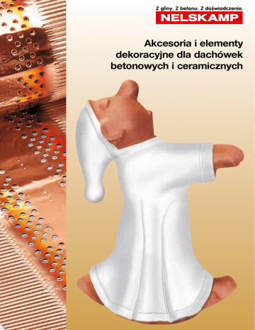 Akcesoria i elementy dekoracyjne dla dachówek betonowych i ceramicznych Ogólny program akcesorii dla dachówek betonowych. Nasz program akcesorii i elementów dekoracyjnych jest na bieżąco aktualizowany. Najnowszy stan znajdą Państwo na: www.nelskamp.de Pomost 40 cm malowany Długość: ~ 40,0 cm Szerokość: Pomost 80 cm malowany Długość: ~ 80,0 cm Szerokość: Pomost 150 cm malowany Długość: ~ 150,0 cm Szerokość: ~ 34,0 cm Grzebień okapu ~ 1,1 sztuk/m Okapowy pas wentylacyjny szary lub brązowy, 2 m w całości ~ 34,0 cm Płotek przeciwśniegowy cynkowana, 3 m długości, 20 cm wysokości ~ 34,0 cm Elastyczny wąż uniwersalny dla wszystkich dachówek betonowych z elementem redukcyjnym i opaską Długość: ~ 50 cm Tasma KupferRoll/AluRoll 2000 Długość: ~ 5 mSzerokość: ~ 29 cm, 33 cm, 36 cm przekrój otworu wentylacyjnego: wg DIN 4108, część 3 miedź naturalna/antracytowy, czerwony Mocowanie łaty kalenicowej Łącznik płotka przeciwśniegowego do kratki przeciwśnieżnej Płytka początku kalenicy Wiertło ø 5 mm, dług. 100 mm Wkręt 100 mm Tarcza diamentowa ø 230 mm Izolacyjny element wlotu powietrza przekrój otworu wentylacyjnego: ~ 200 cm2 Zestaw rozszerzający dla dachówki przepustowej do stabilnego przepustu (konstrukcja poddachowa) z rurą HT (500 mm) przy dachówkach przepustowych DN 125 Okapowy element wentylacyjny ~ 1,1 sztuk/m Hak przeciwśnieżny Farba do dachówek 1 litr, 35 kg Klamra gąsiora nr 470/77 Klamra gąsiora nr 470/76 Kołnierz przyłączeniowy DN 125 dla przejścia w podkładzie w przypadku dachówek przejściowych Klamra koszowa ze śrubą (512) do uciętych dachówek w obszarze naroży dachu Klamra koszowa z drutem (513) do uciętych dachówek w obszarze naroży dachu Ogólny program akcesorii dla dachówek ceramicznych. Nasz program akcesorii i elementów dekoracyjnych jest na bieżąco aktualizowany. Najnowszy stan znajdą Państwo na: www.nelskamp.de SnapStep uniwersalny schodek aluminiowy*** powlekany, do zawieszania na różnych grubościach deski dachowej, nastawialny na nachylenia dachu od 0° do 60° czerwień, brąz, czerń SnapStep 40 cm uniwersalna kratka chodnikowa z dwoma uchwytami* powlekany, do zawieszania na różnych grubościach deski dachowej, nastawialny na nachylenia dachu od 0° do 60°; czerwień, brąz, czerń SnapStep 80 cm uniwersalna kratka chodnikowa z dwoma uchwytami* powlekany, do zawieszania na różnych grubościach deski dachowej, nastawialny na nachylenia dachu od 0° do 60°; czerwień, brąz, czerń Elastyczny wąż uniwersalny dla wszystkich dachówek ceramicznych z elementem redukcyjnym i opaską Długość: ~ 50 cm Elastyczny wąż uniwersalny dla wszystkich dachówek ceramicznych NIBRA® z elementem redukcyjnym i opaską Długość: ~ 50 cm Tasma KupferRoll/AluRoll 2000 Długość: ~ 5 mSzerokość:~ 29 cm, 33 cm, 36 cm przekrój otworu wentylacyjnego: wg DIN 4108, część 3 miedź naturalna/antracytowy, czerwony Mocowanie łaty kalenicowej Płytka początku/końca kalenicy Płytka początku/końca kalenicy Okapowy pas wentylacyjny szary lub brązowy, 2 m w całości Zimna angoba 500 ml, 10 l Klamry kalenicowe lub narożne Wiertło ø 5 mm, dług. 100 mm Tarcza diamentowa ø 230 mm Koszulka gumowa Zestaw rozszerzający dla dachówki przepustowej do stabilnego przepustu (konstrukcja poddachowa) z rurą HT (500 mm) przy dachówkach przepustowych DN 125 DN 150** Izolacyjny element wlotu powietrza przekrój otworu wentylacyjnego: ~ 200 cm2 Kołnierz przyłączeniowy DN 125 dla przejścia w podkładzie w przypadku dachówek przejściowych Okapowy element wentylacyjny ~ 1,1 sztuk/m Hak przeciwśnieżny** Grzebień okapu ~ 1,1 sztuk/m Klamra koszowa ze śrubą (512) do uciętych dachówek w obszarze naroży dachu * dostarczalne tylko w wersji F 15, F 12 Ü, F 13 Classic, F 10 Ü, Dachówka Holenderka, H 14, H 10, D 15 Ü, D 13, DS 10, R 15, R 13 S, R 10, G 10 Klamra koszowa z drutem (513) do uciętych dachówek w obszarze naroży dachu ** Nie ma w magazynie – czas dostawy na zapytanie ***dostarczalne tylko w wersji F 15, F 12 Ü, F 13 Classic, F 10 Ü, Dachówka Holenderka, H 14, D 15 Ü, D 13, DS 10, R 15, R 13 S, R 10, G 10 czerwony, brązowy lub antracytowy Taśmy kalenicy KupferRoll 2000 i AluRoll 2000. Taśmy KupferRoll 2000 i AluRoll 2000 są w stu procentach niezawodnym materiałem do uszczelniania oraz wentylacji kalenicy. Są w 100% z metalu, tj. z miedzi lub aluminium, dzięki czemu spełniają surowe wymogi w zakresie izolacji dachu. W szerokościach 290 mm, 330 mm i 360 mm rolki te wykonywane są całkowicie z miedzi lub aluminium. Dzięki użyciu tylko jednego materiału zapewnia się im niezawodne funkcjonowanie i długą żywotność. Przekrój wentylacji odpowiada w pełni normie DIN 4108, część 3, tzn. wentylacja jest zapewniona trwale. Osiąga się to dzięki otworom wentylacyjnym w formie kołnieża, które w przypadku wody pełzającej odprowadzają wilgoć. W cząści plisowanej jest zmożliwość wydłużenia materiału do 20%, Taśmę można formować przyciskając ją kciukiem do powierzchni dachówki. Taśma klejąca z kauczuku butylowego służy jako plastyczne, odporne na starzenie i warunki atmosferyczne połączenie z materiałami budowlanymi. środkowa część rolki ma zwiększoną grubość materiału i jest przybijana do lat gwożdziami. Małe wgłębienia przyspieszają tę czynność, wyznaczają bowiem środek rolki i ułatwiają wbijanie gwożdzi w równomiernych odstępach. Wszystkie zastosowane materiały są wolne od rozpuszczalników i łatwe w utylizacji, więc są przyjazne dla środowiska naturalnego. Miedź, kolor naturalny Aluminium, czerwony Aluminium, antracytowy Taśma KupferRoll 2000 Dostarczane jest w naturalnym, przez co nie jest konieczne dostosowanie kolorystyczne taśmy do koloru powierzchni dachowej. Po ułożeniu materiał przyjmuje brązowy kolor miedzi, który po dłuższym czasie pokrywa się typową dla miedzi patyną. Taśma Kupfer