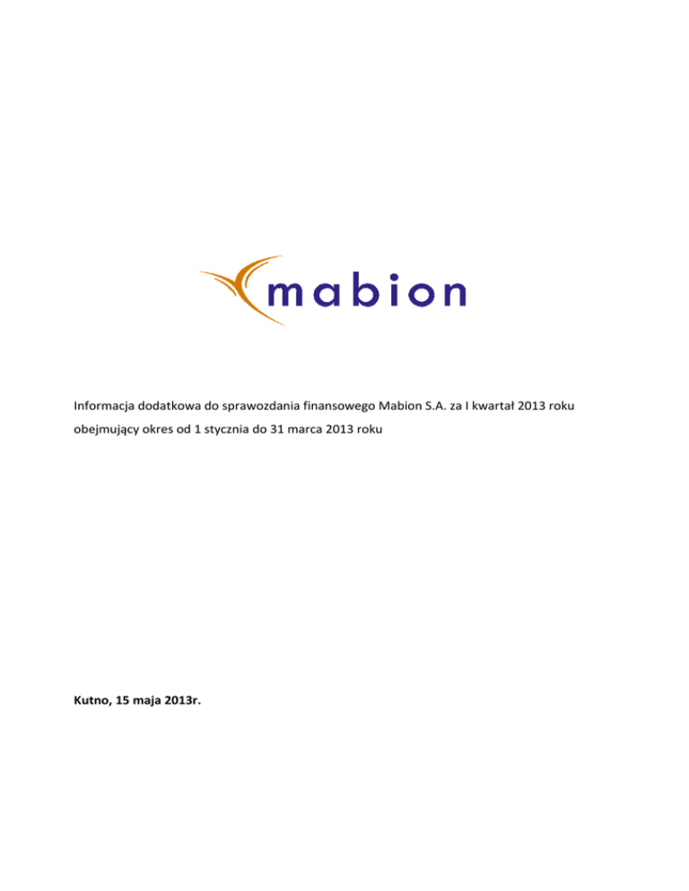 Informacja dodatkowa do sprawozdania finansowego Mabion S.A. za I kwartał 2013 r.
