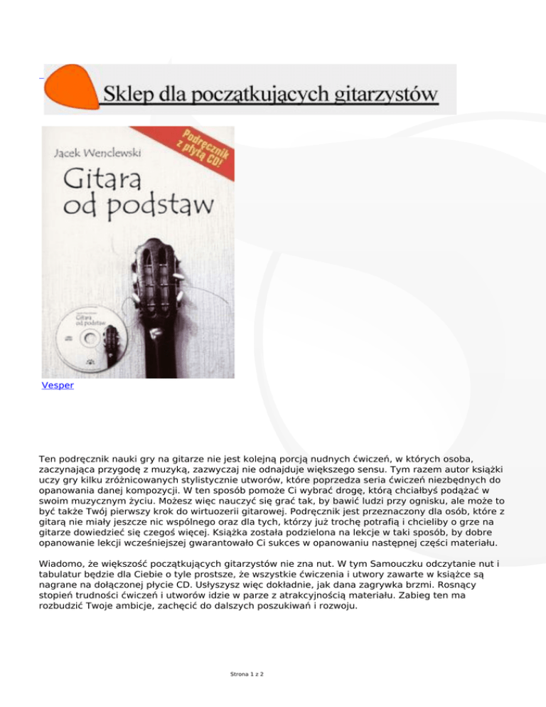 Vesper Ten podręcznik nauki gry na gitarze nie jest kolejną porcją