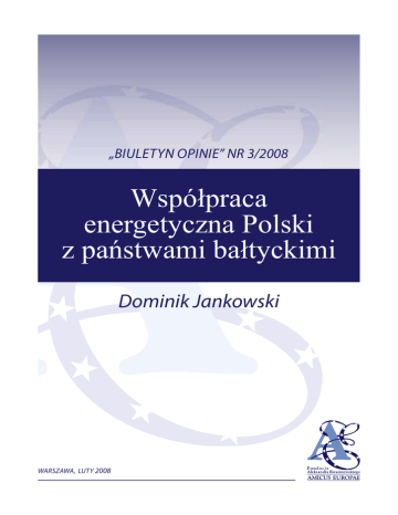 „BIULETYN OPINIE” NR 3/2008 Współpraca energetyczna Polski z państwami bałtyckimi Dominik Jankowski WARSZAWA, LUTY 2008 Seria „Biuletyn – Opinie Fundacji Amicus Europae” jest cykliczną publikacją, analizującą najważniejsze wydarzenia i procesy społeczno-polityczne oraz międzynarodowe, zachodzące na świecie. Tezy przedstawiane w materiałach publikowanych w „Biuletynie” odzwierciedlają wyłącznie poglądy ich autorów. Współpraca energetyczna Polski... Energetyka jądrowa 01 Współpraca energetyczna Polski z państwami bałtyckimi W historii stosunków międzynarodowych pojęcie własnego bezpieczeństwa było jednym z najważniejszych punktów polityki zagranicznej każdego państwa. Wraz ze zmieniającym się obrazem ładu światowego kształtowały się również nowe koncepcje bezpieczeństwa, których realizacja gwarantowała przetrwanie państwowości. W chwili obecnej kluczowym wyzwaniem dla dyplomacji każdego państwa jest zapewnienie odpowiednio wysokiego poziomu bezpieczeństwa energetycznego. Również Polska prowadzi od upadku ZSRR coraz silniejsze starania w celu dywersyfikacji dostawców surowców energetycznych. Wobec faktu, iż wspólna polityka Unii Europejskiej w dziedzinie energii wciąż dopiero się kształtuje, niezbędne są działania prowadzące do budowania sojuszy. Obecny energetyczny modus vivendi UE nie może bowiem być gwarantem pełnego bezpieczeństwa energetycznego każdego państwa członkowskiego z osobna. W debacie dotyczącej polityki energetycznej Polski główny akcent położony jest na współpracę z Królestwem Norwegii, państwami regionu Azji Centralnej (Azerbejdżan, Turkmenistan) czy państwami Afryki Północnej (Algieria). Państwa bałtyckie (Litwa, Łotwa, Estonia) nie mogą być alternatywą w tej dyskusji, głównie ze względu na fakt, iż region ten nie posiada ani strategicznych surowców, ani dominującej pozycji na światowych rynkach energii. Może stać się jednak cennym uzupełnieniem polskiego spojrzenia na współczesne wyzwania, przed którymi stoi bezpieczeństwo energetyczne. Dzięki podobnym do polskich doświadcze¬niom ze współpracy z Federacją Rosyjską w dziedzinie energii, państwa bałtyckie mogą zaoferować Polsce więcej, niż wynikałoby z ich potencjału strategicznego, co zostało podkreślone w projekcie dokumentu „Polityka energetyczna Polski do 2030 roku” opracowanego przez Ministerstwo Gospodarki. Jednym z priorytetów w międzynarodowej współpracy energetycznej ma stać się „integracja energetyczna, w tym elektroenergetyczna z Państwami Bałtyckimi (Litwą, Łotwą i Estonią)”1. Energetyka jądrowa Kiedy we wrześniu 1990 roku Rada Ministrów RP zrezygnowała ostatecznie z budowy elektrowni atomowej w Żarnowcu, nikt nie spodziewał się, że tak szybko Polska zostanie zmuszona do ponownego zastanawiania się nad skonstruowaniem własnej siłowni jądrowej. Wraz z coraz szybszym wzrostem konkurencji o dostęp do surowców energetycznych na świecie, niezbędnym staje się wdrożenie długofalowego programu budowy elektrowni jądrowych2. Trzeba jednakże zauważyć, że problematyka wykorzystania energii atomowej ma wśród opinii publicznej charakter przede wszystkim emocjonalny, 1 Polityka energetyczna Polski do 2030 roku. Projekt dokumentu (wersja 3.2 z dnia 10 września 2007), Ministerstwo Gospodarki, Warszawa 2007, s. 68. <http://www.mg.gov.pl/NR/rdonlyres/8C3B84AA-C9EF-471A-9B33-A66E2C700CC0/37509/ PEPwer3210092007.pdf>. 2 Energetyka jądrowa w Polsce, Rekomendacje PISM, Polski Instytut Spraw Międzynarodowych, Warszawa 2007, s. 1. <http://www.pism.pl/zalaczniki/rekomendacje_PISM_nr_2.pdf>. Współpraca energetyczna Polski... Energetyka jądrowa 02 przybierający postać od skrajnej negacji, związanej głównie z groźbą ew. awarii i skażenia, do niebezpiecznego hurraoptymizmu, przez który przebija się wizja mocarstwowości Polski. Ponadto należy uwzględnić również ramy czasowe całej inwestycji. Obecnie ocenia się, że cały proces realizacji budowy elektrowni jądrowej może zająć około 15 lat3. Niezbędne są bowiem nie tylko odpowiednie analizy, wyszkolenie kadr, decyzje polityczne, administracyjne i legislacyjne, lecz także zakrojona na szeroką skalę akcja informacyjna skierowana do opinii publicznej. W tej sytuacji, pragnąc zbudować pierwszą elektrownię w Polsce po 2020 roku4, należy poszukiwać rozwiązań już teraz, tak aby jak najowocniej spożytkować nieuchronnie płynący czas. Stąd też latem 2006 roku narodził się pomysł przyłączenia się Polski do projektu Ignalina II, czyli budowy nowej elektrowni atomowej na terytorium Litwy, realizowanej wspólnie przez konsorcja z Litwy, Łotwy i Estonii5. Obecnie na Litwie znajduje się elektrownia atomowa, tzw. Ignalina I, która jednak musi zostać zamknięta do końca 2009 roku. Taki zapis znalazł się w Traktacie Akcesyjnym podpisanym przez Litwę. Komisji Europejskiej zależało bowiem na tym, żeby dwa bloki reaktora wyłączono z użycia jak najszybciej. Pomimo starań strony litewskiej, unijni decydenci pozostali w sprawie Ignaliny I nieugięci. Udział Łotwy i Estonii w nowym przedsięwzięciu należy tłumaczyć przede wszystkim faktem, że obecnie spora część zapotrzebowania na energię zaspokajana jest przez republiki nadbałtyckie właśnie poprzez elektrownię jądrową w Ignalinie. Aktualnie szacuje się, iż projekt Ignalina II nie zostanie zakończony wcześniej niż w 2015 roku. Państwom bałtyckim zależy jednak na tym, żeby inwestycja była realizowana sprawnie, biorąc przede wszystkim pod uwagę uwarunkowania geostrategiczne. W latach 2009-2015, kiedy stara elektrownia będzie już zamknięta, zaś nowa pozostanie wciąż w fazie budowy, regionowi grozi deficyt energii elektrycznej. Na chwilę obecną jedynym rozwiązaniem pozostaje zwiększenie uzależnienia od Federacji Rosyjskiej, czego państwa bałtyckie chcą za wszelką cenę unikną
