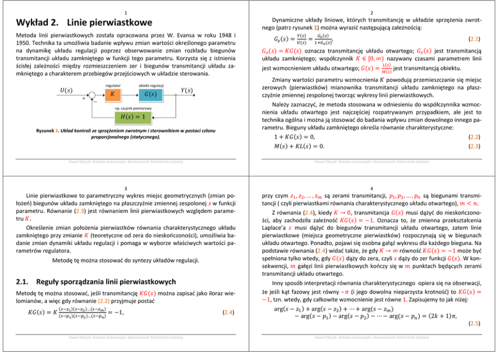 przy czym ) , )* , … , )+ są zerami transmitancji, , , ,* , … , ,- są biegunami transmitancji ( czyli pierwiastkami równania charakterystycznego układu otwartego), . / 0.