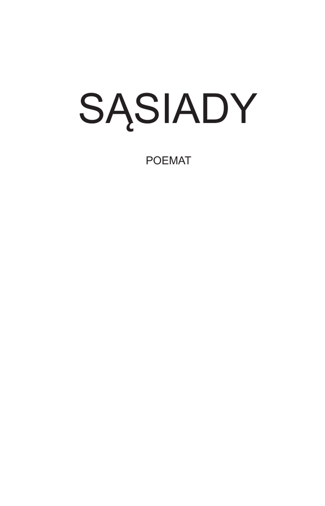 Sąsiady POEMAT Adrian Markowski Sąsiady POEMAT Copyright © Adrian Markowski, 2015 Projekt okładki Zbigniew Larwa Zdjęcia na okładce © ARTZ 2015; kadry z filmu Sąsiady, reż. Grzegorz Królikiewicz, rok prod. 2014, fot. Jacek Łukasiewicz © SF KADR; zdjęcie autora © Anna Kubiak Redaktor prowadzący Anna Derengowska Korekta Michał Załuska Łamanie Alicja Rudnik Ilustracje w tekście Adrian Markowski ISBN 978-83-7961-028-0 Warszawa 2015 Wydawca Prószyński Media Sp. z o.o. 02-697 Warszawa, ul. Rzymowskiego 28 www.proszynski.pl Druk i oprawa DRUKARNIA TINTA 13-200 Działdowo, ul. Żwirki i Wigury 22 www.drukarniatinta.pl Najlepsza książka, jaką kiedykolwiek napisano! W każdym razie o mnie. Sąsiad Takiej książki jeszcze nie było! A już na pewno nie o naszych sąsiadach! Żona sąsiada Czytam, czytam i jakbym sąsiada i jego żonę widział! Otwierasz książkę i od razu wiesz, co to za jedni! Sąsiad sąsiadów Sobota W sobotę zeszłą, przed południem, do domu wracam. Wrzask, krzyk, na całym podwórku słychać! Sąsiad, co to na dole po drugiej stronie podwórka mieszka, żonę tłucze. Sąsiedzi wszyscy w oknach swoich siedzą, słuchają. Swoją żonę tłucze przecież, nie inną. Swoje powody najwidoczniej ma, bo jakby nie miał, żony by przecież z samego rana nie tłukł. A za co żonę sąsiad tłukł, sąsiadka, co ją na schodach spotkałem, mi powiedziała. Motor, sąsiad, co nad nim mieszka, sobie kupił i po podwórku z samego rana zaczął na motorze w kółko jeździć. Sąsiedzi wszyscy w oknach siedzą, patrzą. Na swoim motorze przecież sąsiad jeździ, nie innym. Swoje powody, żeby w kółko po podwórku na motorze jeździć, najwidoczniej ma. Dlaczego na motorze po podwórku w kółko sąsiad jeździł, od sąsiadki też się dowiedziałem. Sąsiad, co okna naprzeciwko sąsiada ma, rower sobie tydzień wcześniej kupił i na rowerze po podwórku cały dzień w kółko jeździł i dzwonkiem dzwonił. 7 Wszyscy sąsiedzi w oknach siedzą, patrzą. Na swoim rowerze jeździ, nie innym. Swoje powody, żeby w kółko po podwórku na rowerze jeździć, najwidoczniej ma. To jak sąsiad, co motor tydzień później kupił, sąsiada na rowerze zobaczył, zaraz zaczął żonę z samego rana tłuc. Rowery, krzyczał, inni sobie kupują, a ja co? Życie z tobą, tak że na całym podwórku było słychać, krzyczał, marnuję! Sąsiedzi wszyscy w oknach siedzą, patrzą. Swoją żonę przecież tłucze, nie inną. Swoje powody najwidoczniej ma, bo inaczej żony by z samego rana przecież nie tłukł. A rower to sąsiadowi zaraz zginął. W komórce sąsiad rower na noc zamknął, kłódkę nową założył, w oknie pół nocy, żeby roweru mu nie ukradli, przesiedział, ale w końcu musiał spać się położyć. A następnego dnia roweru w komórce już nie było. Nie wiadomo, gdzie się podział. Nawet kłódka nowa mu nie została. To w tę zeszłą sobotę sąsiad, ten co to żonę tydzień wcześniej stłukł, motor sobie na raty kupił i od samego rana w kółko po podwórku na motorze jeździł. Sąsiedzi wszyscy w oknach siedzą, patrzą. Na swoim motorze przecież jeździ, nie innym. Swoje powody, żeby w kółko po podwórku na motorze jeździć, najwidoczniej ma. Tylko motorem na podwórko wjechał, żona sąsiada, co to rower miał, zaraz w samej halce z domu uciekła. Na co miała czekać? To i co dziwnego, że sąsiad, co na dole, po drugiej stronie podwórka mieszka, z samego rana zaczął swoją żonę tłuc, 8 jak nie uciekała? Motory, krzyczał, inni sobie kupują, a ja co? Życie z tobą, tak że na całym podwórku było słychać, marnuję! Sąsiedzi w oknach siedzą, patrzą. Swoją żonę przecież sąsiad tłucze, nie inną. Swoje powody najwidoczniej ma, bo jakby nie miał, żony by przecież z samego rana nie tłukł. A motor to sąsiadowi następnego dnia zginął. Motor pod oknem postawił, przykrył plandeką, pół nocy w oknie przesiedział, pilnował, żeby mu motoru nie ukradli. Ale musiał w końcu położyć się spać. A w niedzielę rano motoru już pod oknem nie było. Nie wiadomo, gdzie się podział. Plandeka mu nawet nie została. W sobotę następną, rano, do domu wracam. Syrenka, patrzę, nowa, na podwórko wjeżdża. Sąsiad, ten co to żonę w zeszłą sobotę tłukł, syrenkę nową na raty kupił. A że jeździć syrenką po podwórku się nie dało, to myć zaraz syrenkę zaczął. Wszyscy sąsiedzi w oknach siedzą, patrzą. Swoją syrenkę myje, nie inną. Swoje powody najwidoczniej ma, bo przecież inaczej syrenki nowej by z samego rana nie mył. Tylko żony sąsiadów innych, że sąsiad syrenką na podwórko wjechał, zobaczyły, w samych halkach, jedna po drugiej, z domu zaczęły uciekać. Sąsiedzi w oknach siedzą, patrzą. W swoich halkach żony uciekają, nie w innych. Swoje powody najwidoczniej mają. Wesołych Świąt! Po karpia przed świętami mnie żona wysłała. Gdzie ja jej karpia dostanę? Dużego, mówi, przynieś, żywego! Inaczej co to za święta? Jakie to święta, jak się karpia przed śniadaniem nie utłucze? Pieniądze z portmonetki daje i drzwi otwiera. Na podwórko wychodzę, patrzę. Sąsiedzi do domu karpie w gazetę owinięte niosą. Silne sztuki, bo jak trzeba się w siatkach rzucają. Dwa muszę dostać, myślę. Jakby po jednym tylko dawali, trudno, drugi raz w kolejce stanę. Jednego przyniosę i co? Żona zaraz utłucze i już po świętach. Młotka do karpia nawet do ręki nie dostanę. A tak, ona swojego, ja swojego utłukę. Z bramy wychodzę. Dokąd po karpia? Sąsiadów, tych co nieśli, mogłem zapytać. Z drugiej strony, może i lepiej, że nie pytałem. Zaraz by mnie na drugi koniec miasta albo i dalej wysłali! Z sąsiadami znamy się nie od wczoraj! Wesołych Świąt! Na ulicy kolejka. Długa. Za róg zakręca. Może po karpia? Do ostatniego podchodzę, pytam. Nic. Głowy nawet nie odwróci. Tylko do tego, co przed nim, bliżej się przysuwa. Odczekałem chw