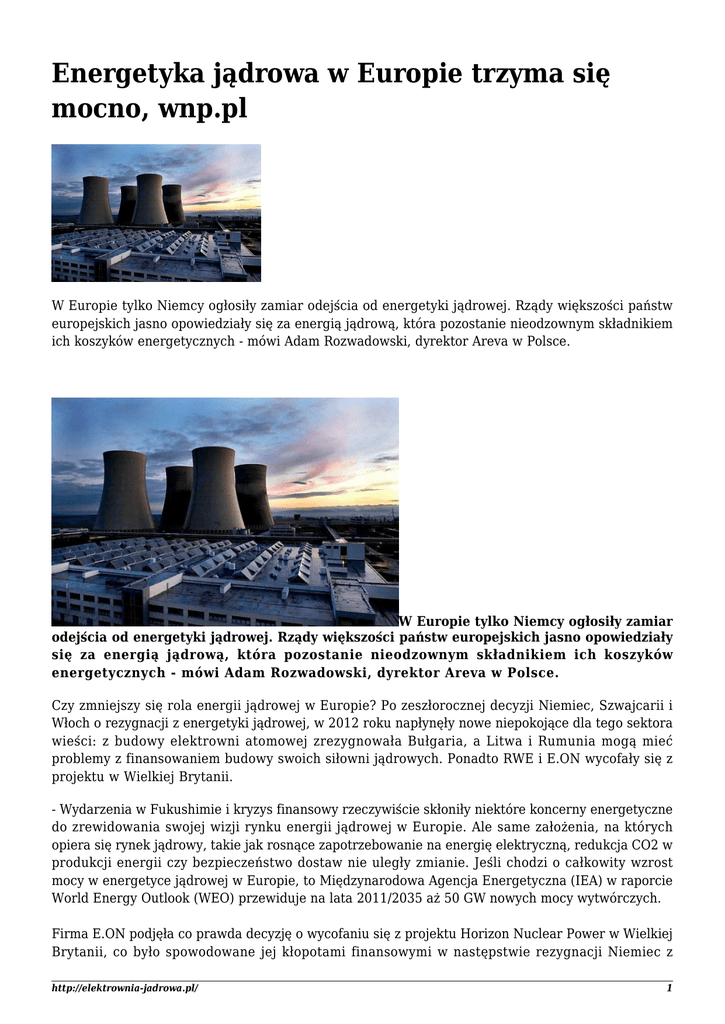 Energetyka jądrowa w Europie trzyma się mocno, wnp.pl