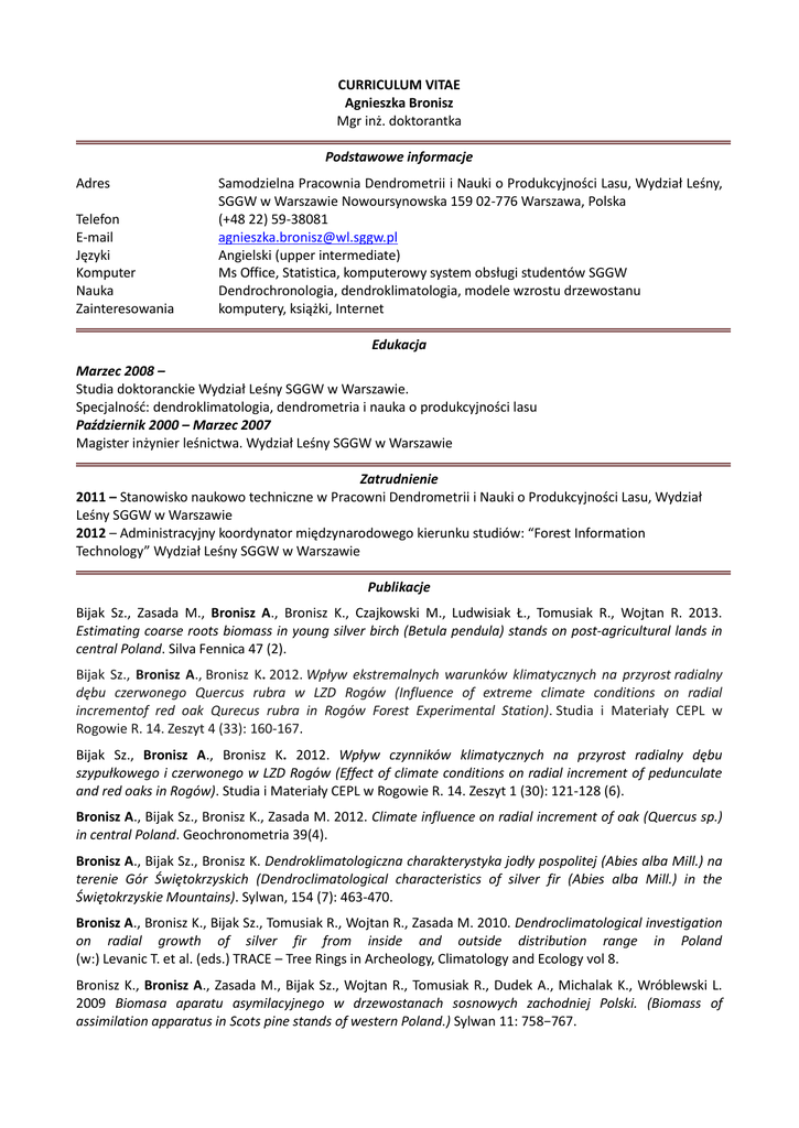 CV po polsku - Wydział Leśny SGGW