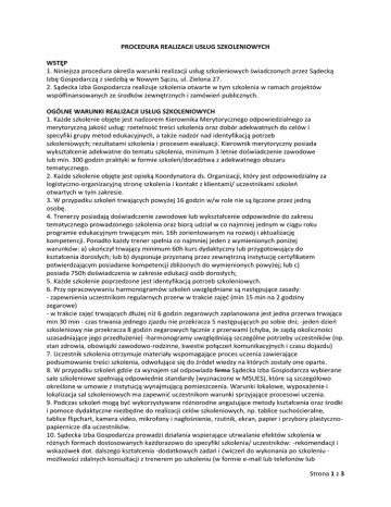 Strona 1 z 3 PROCEDURA REALIZACJI USŁUG SZKOLENIOWYCH