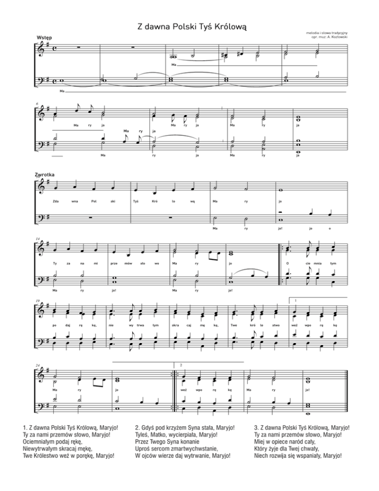 1. Z dawna Polski Tyś Królową, Maryjo! Ty za nami przemów słowo